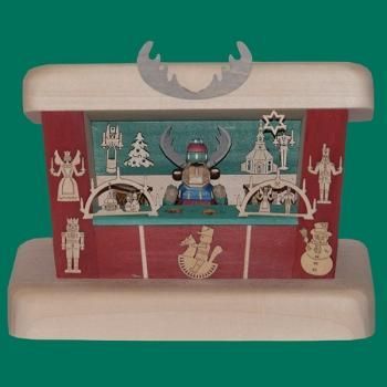 Holzhaus Elch Weihnachtsmarktbude geschnitzt Höhe 17cm NEU Figuren Schnitzen
