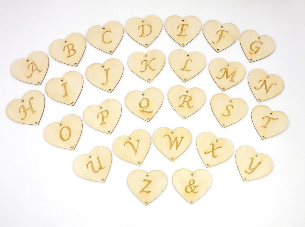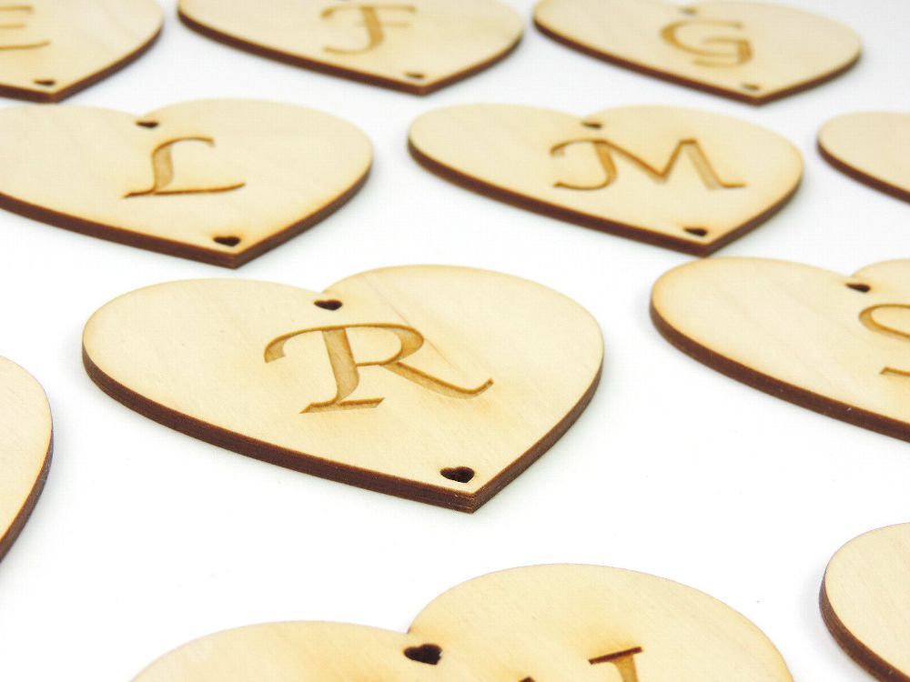 Holzherz mit Buchstaben graviert, Alphabet 8cm Deko Hochzeit Geburtstag EHS