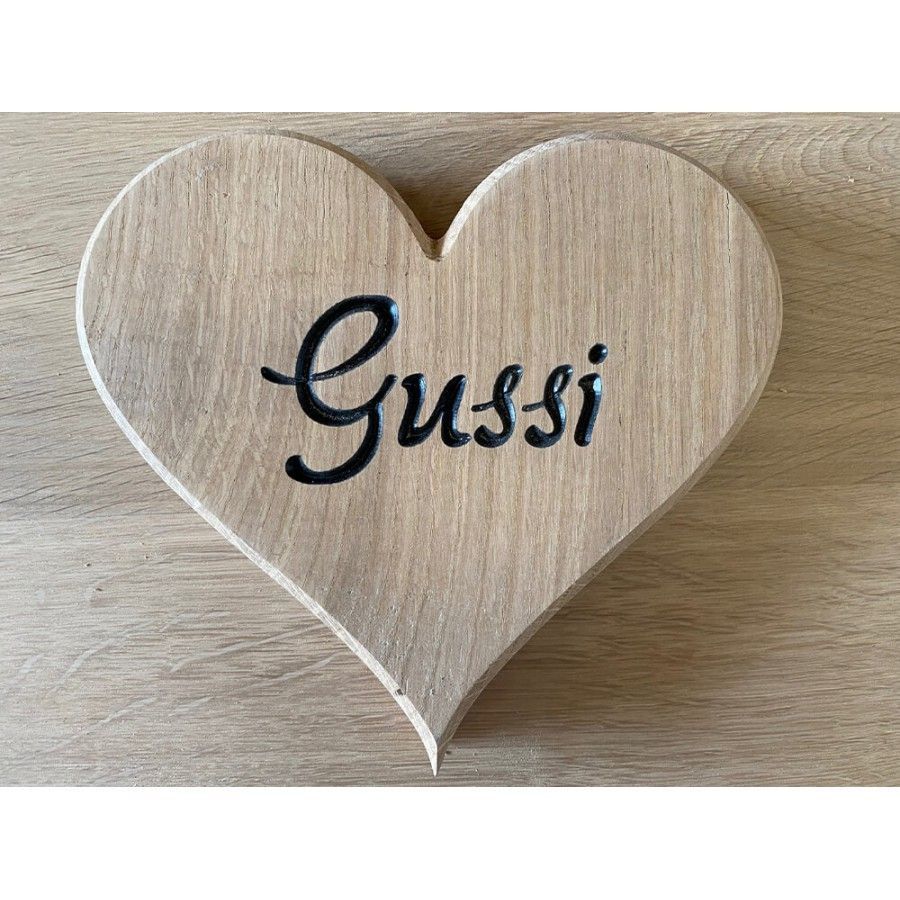Holzherz mit individueller Gravur, personalisiert, Name, Datum, Schriftzug gefräst, 2