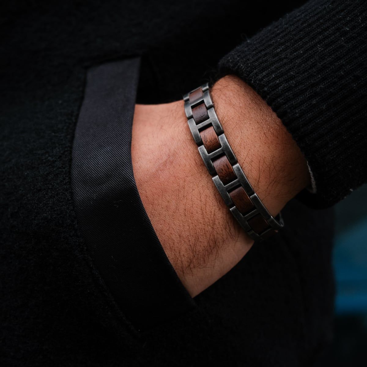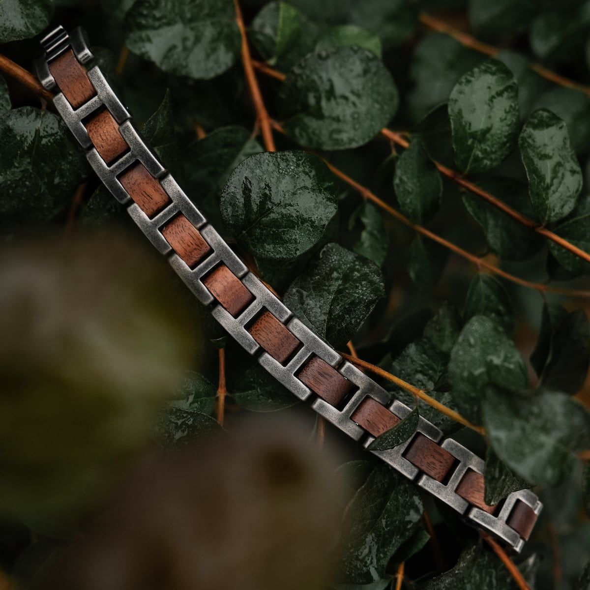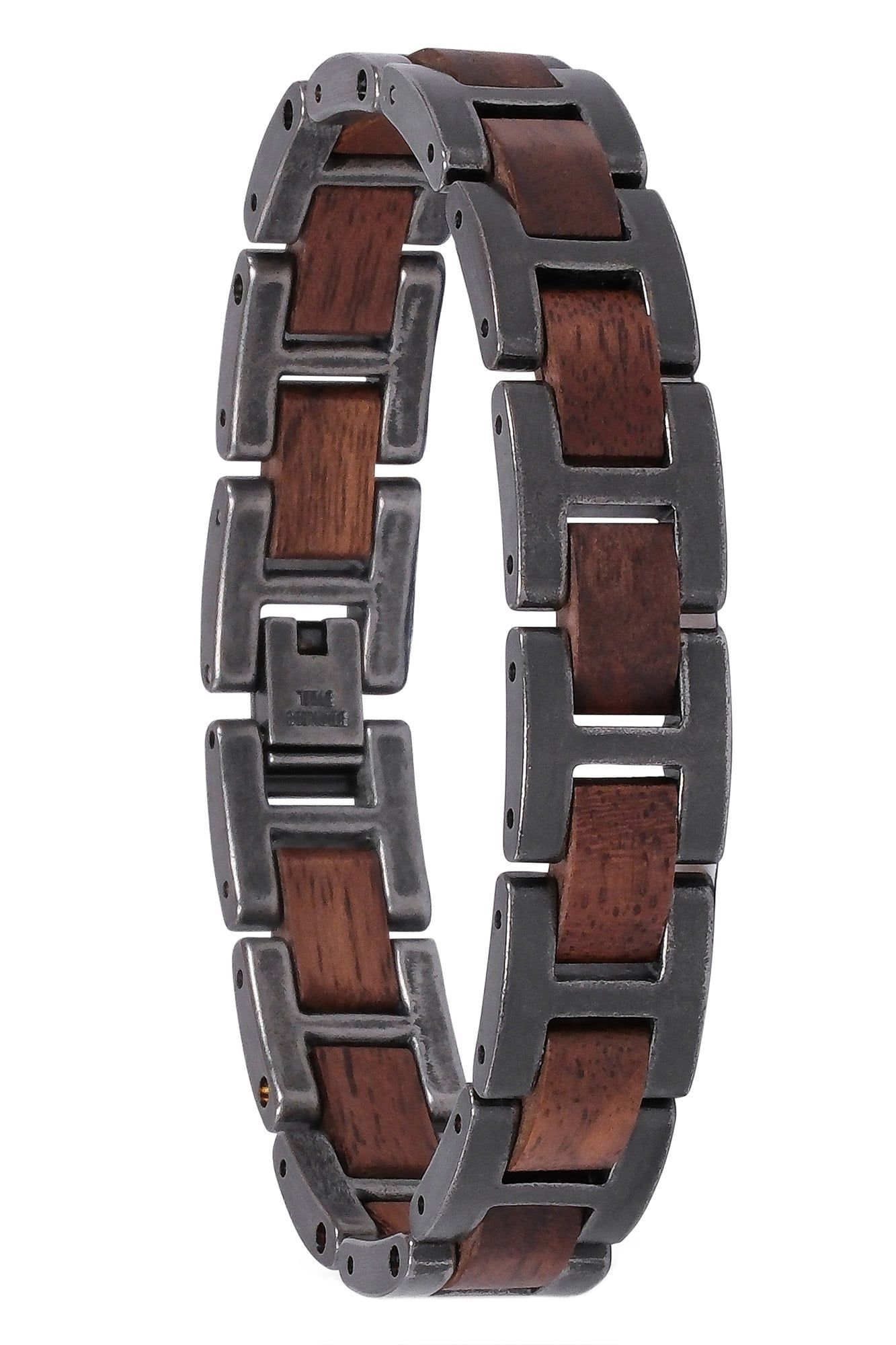 Holzkern Schmuck Herren-Armband Edelstahl mit Holz Acoustic Walnuss/Antik-Silberfarb