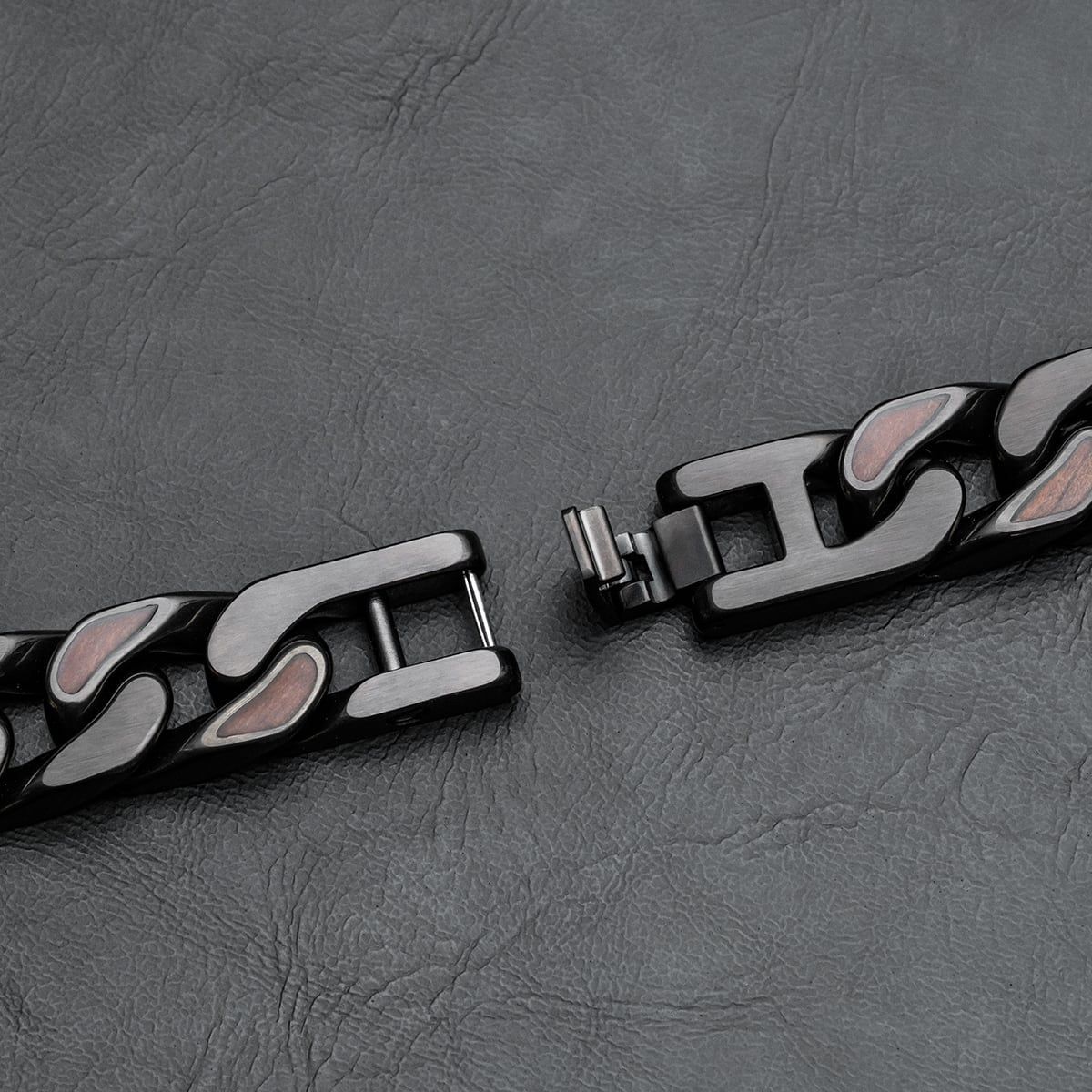 Holzkern Schmuck Herren-Armband Edelstahl mit Holz Bodyguards Walnuss/Dunkelgrau