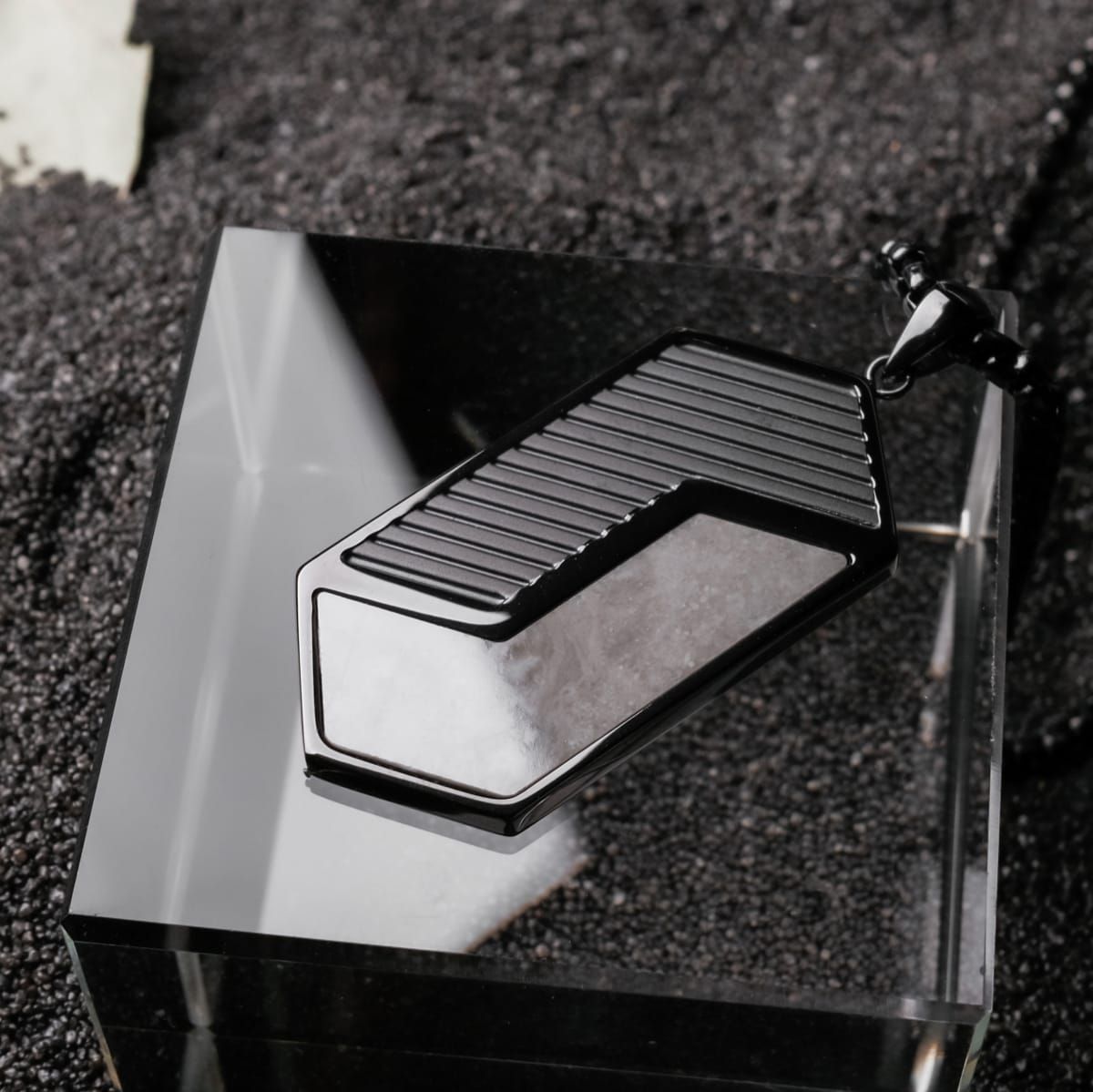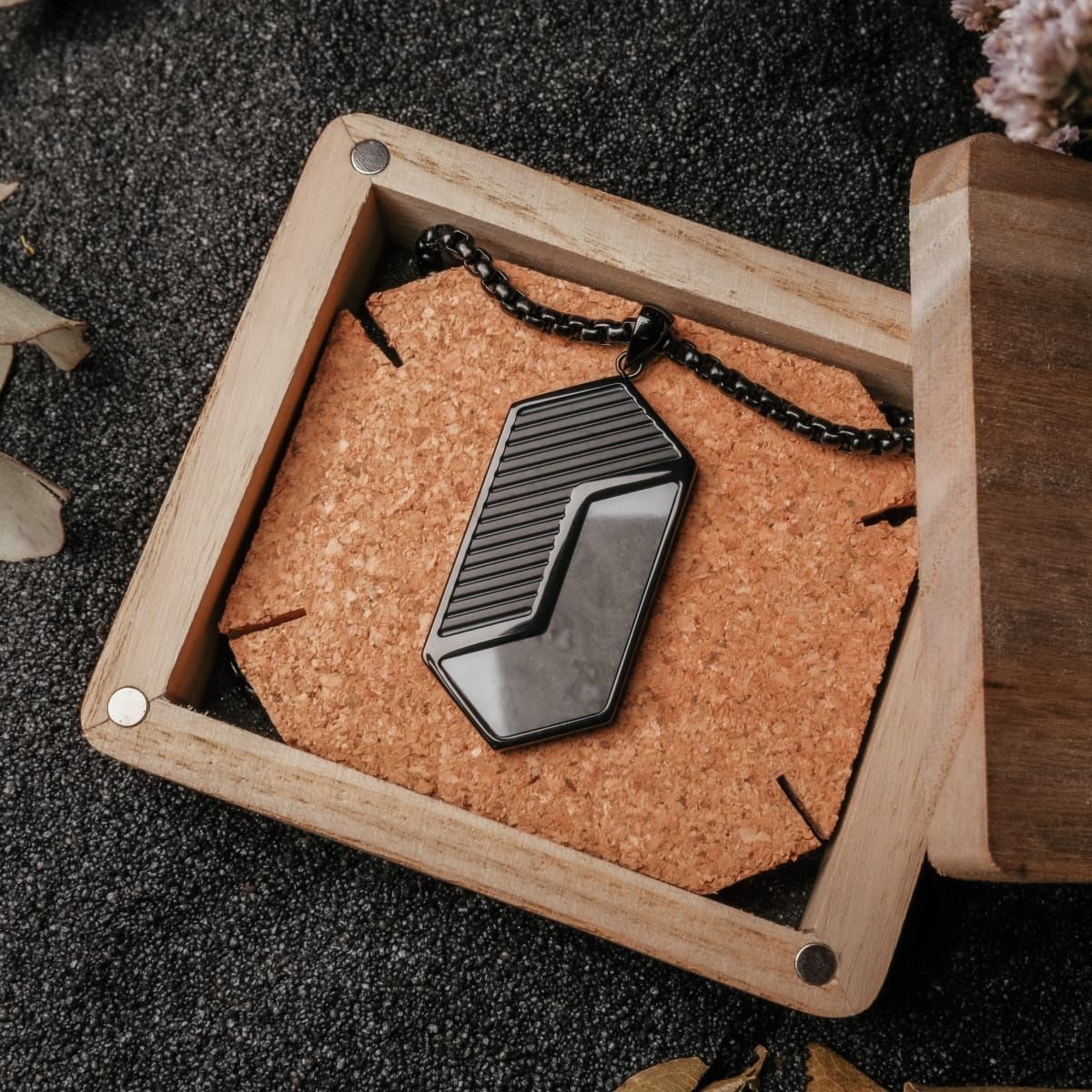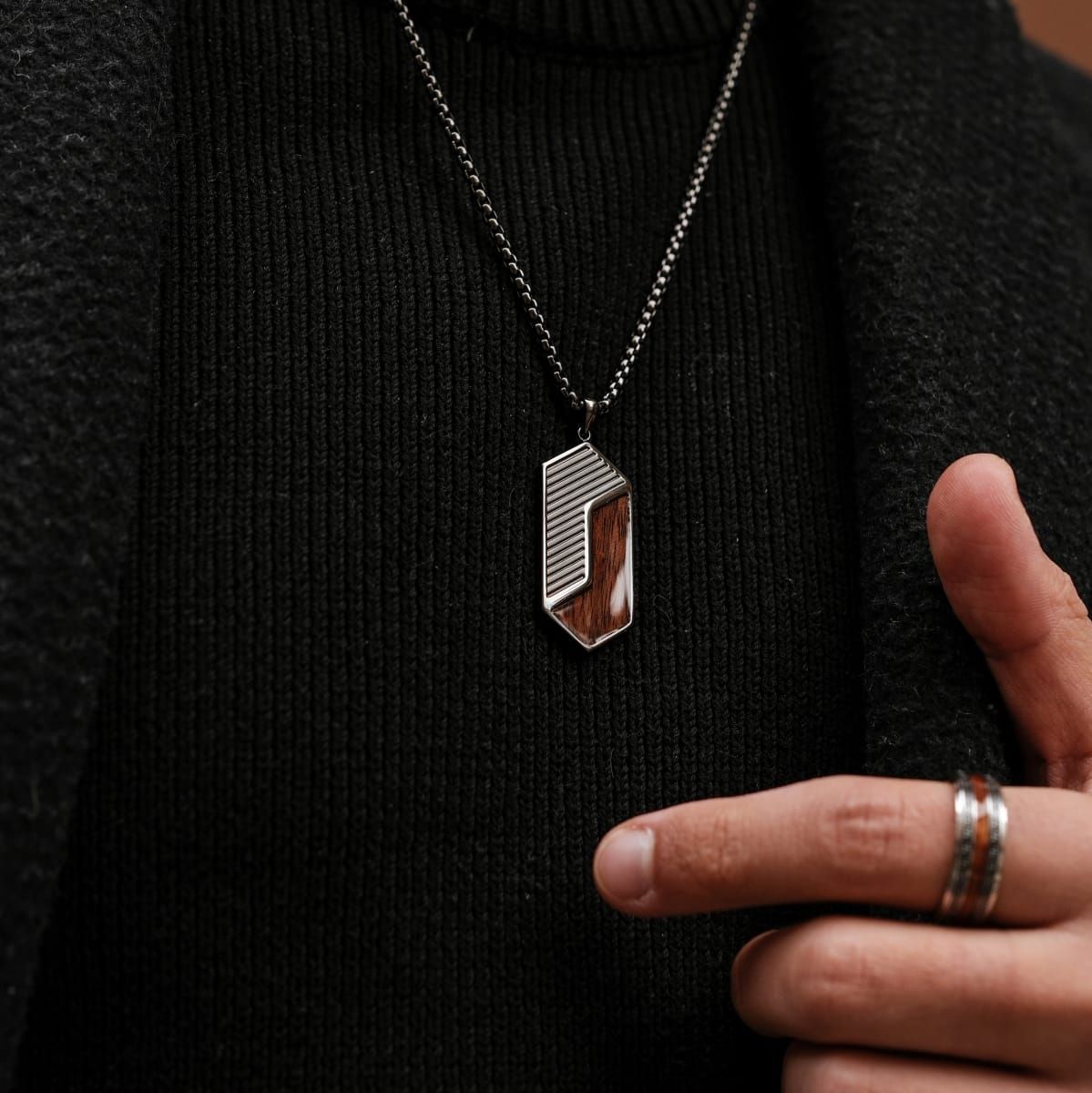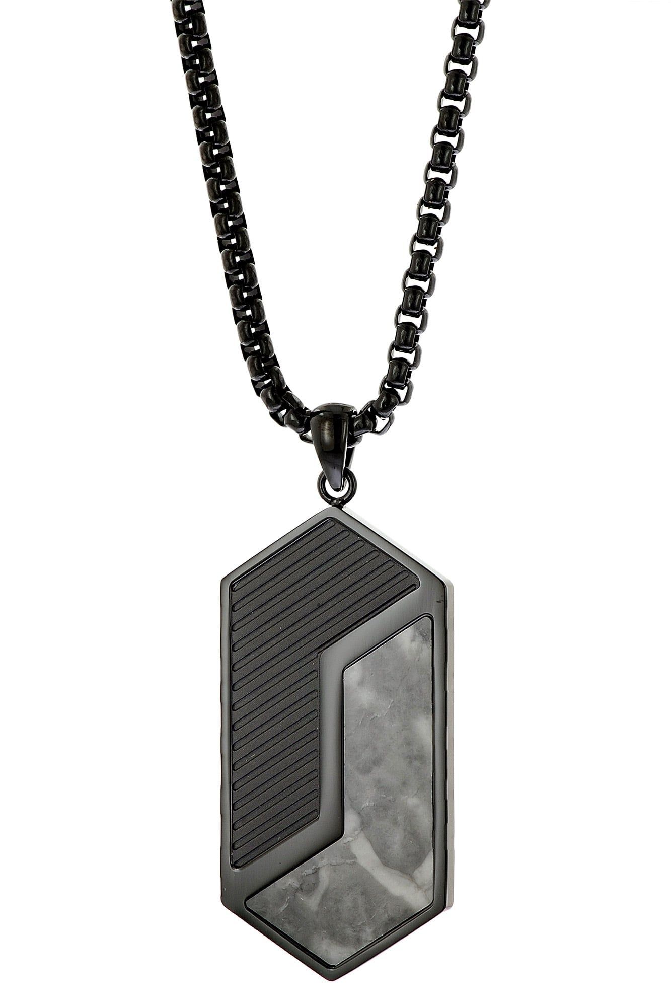 Holzkern Schmuck Herren-Halskette Edelstahl Zigzag Marmor/Schwarz