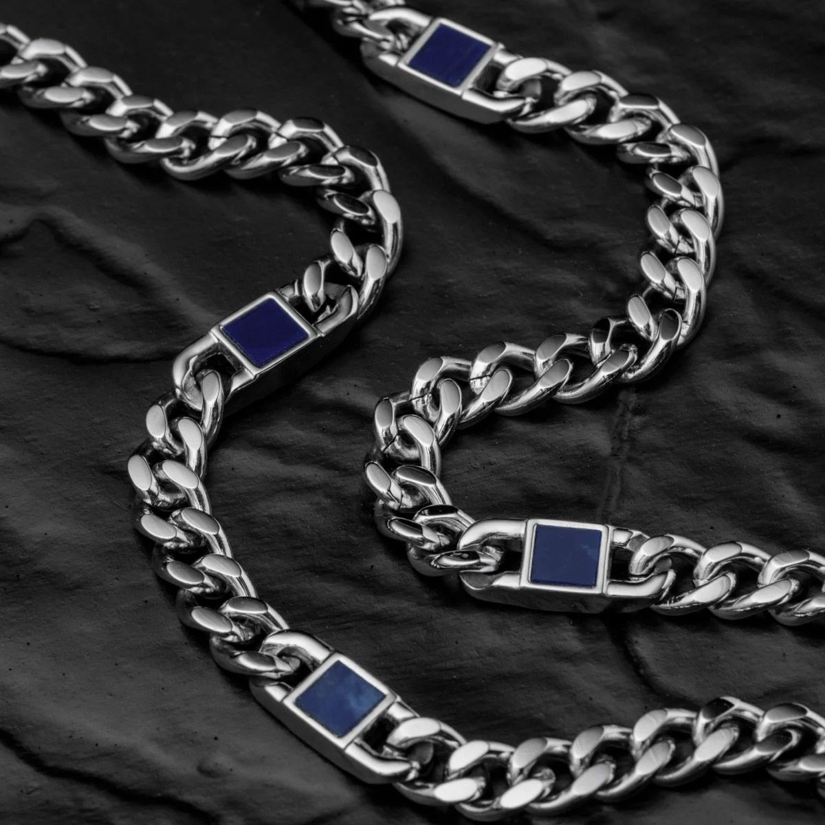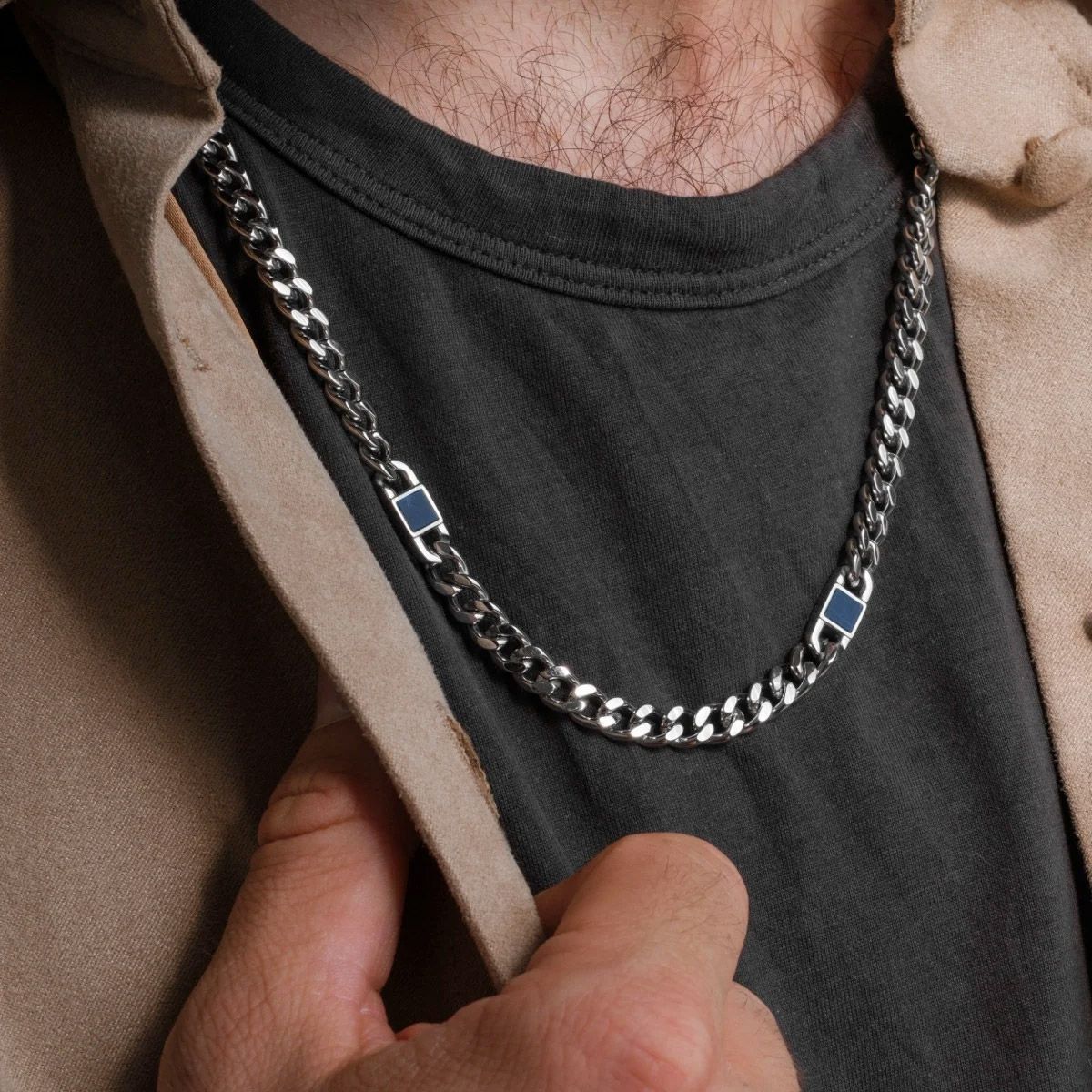 Holzkern Schmuck Herren-Kette Edelstahl Bodyguards Marmor/Silberfarben