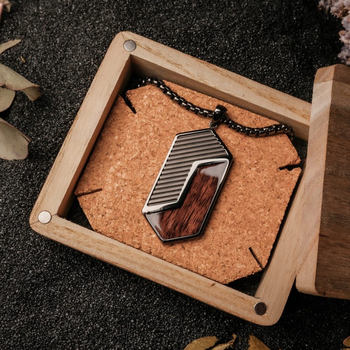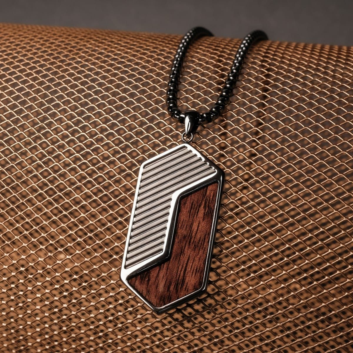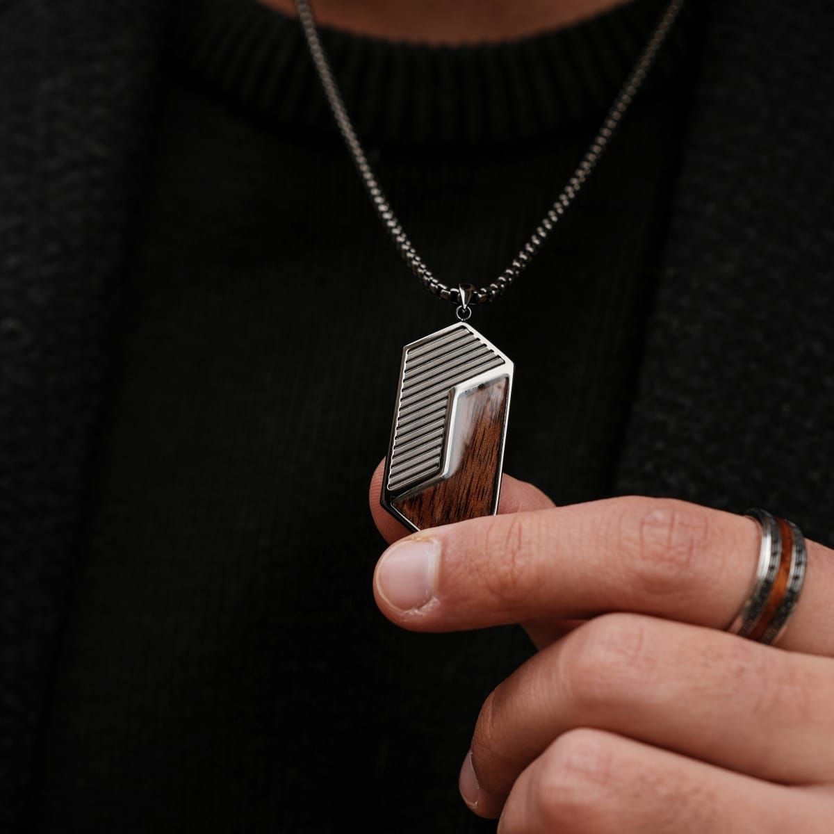 Holzkern Schmuck Herren-Kette Edelstahl Zigzag Walnuss/Dunkelgrau