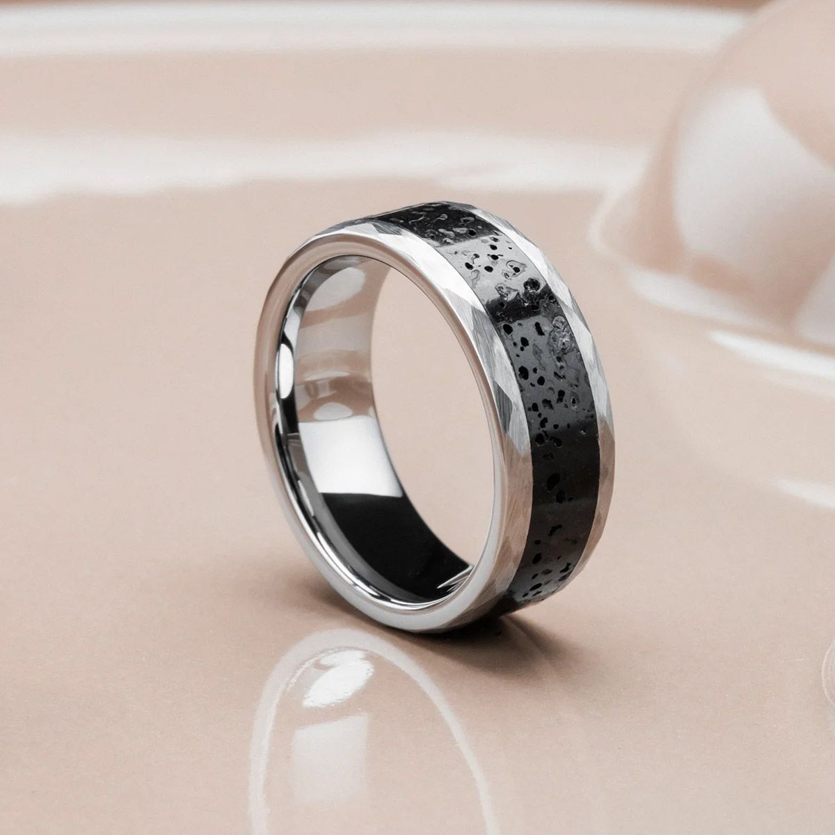 Holzkern Schmuck Herren-Ring Sumo Lava/Wolfram