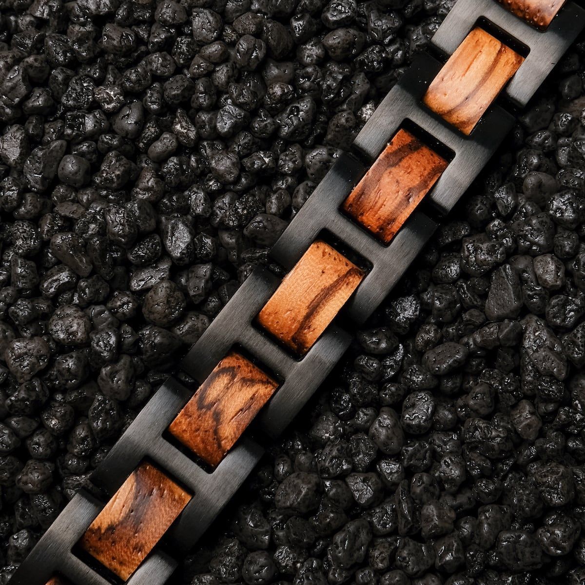 Holzkern Schmuck Herrenarmband Edelstahl mit Holz Acoustic Zebrano/Schwarz