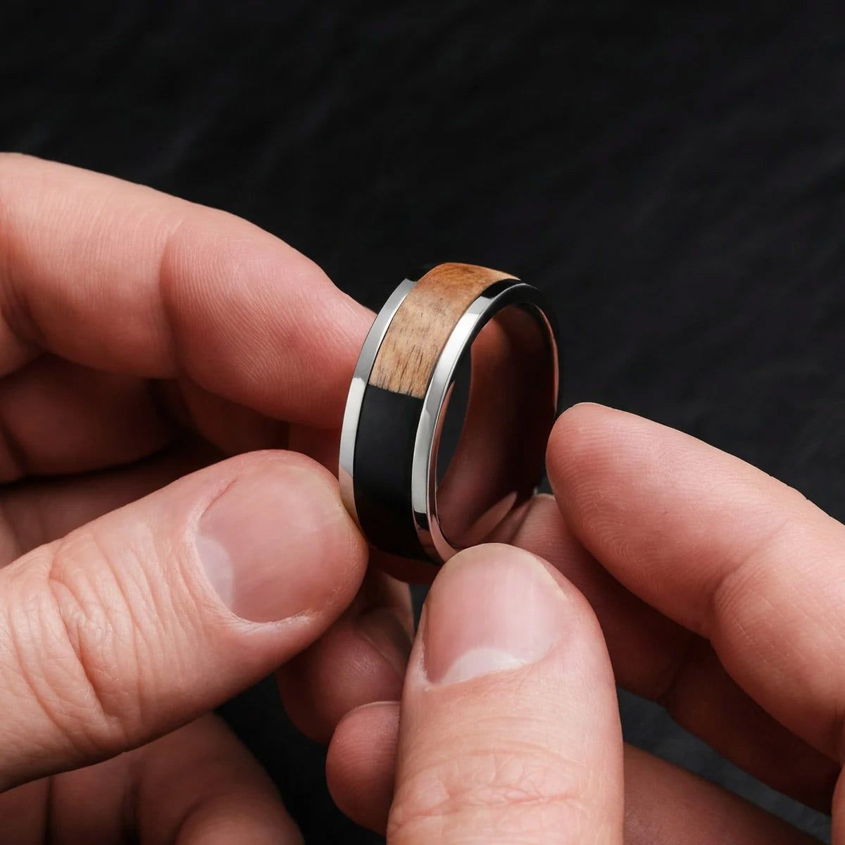 Holzkern Schmuck Herrenring Sumo Koa/Titan