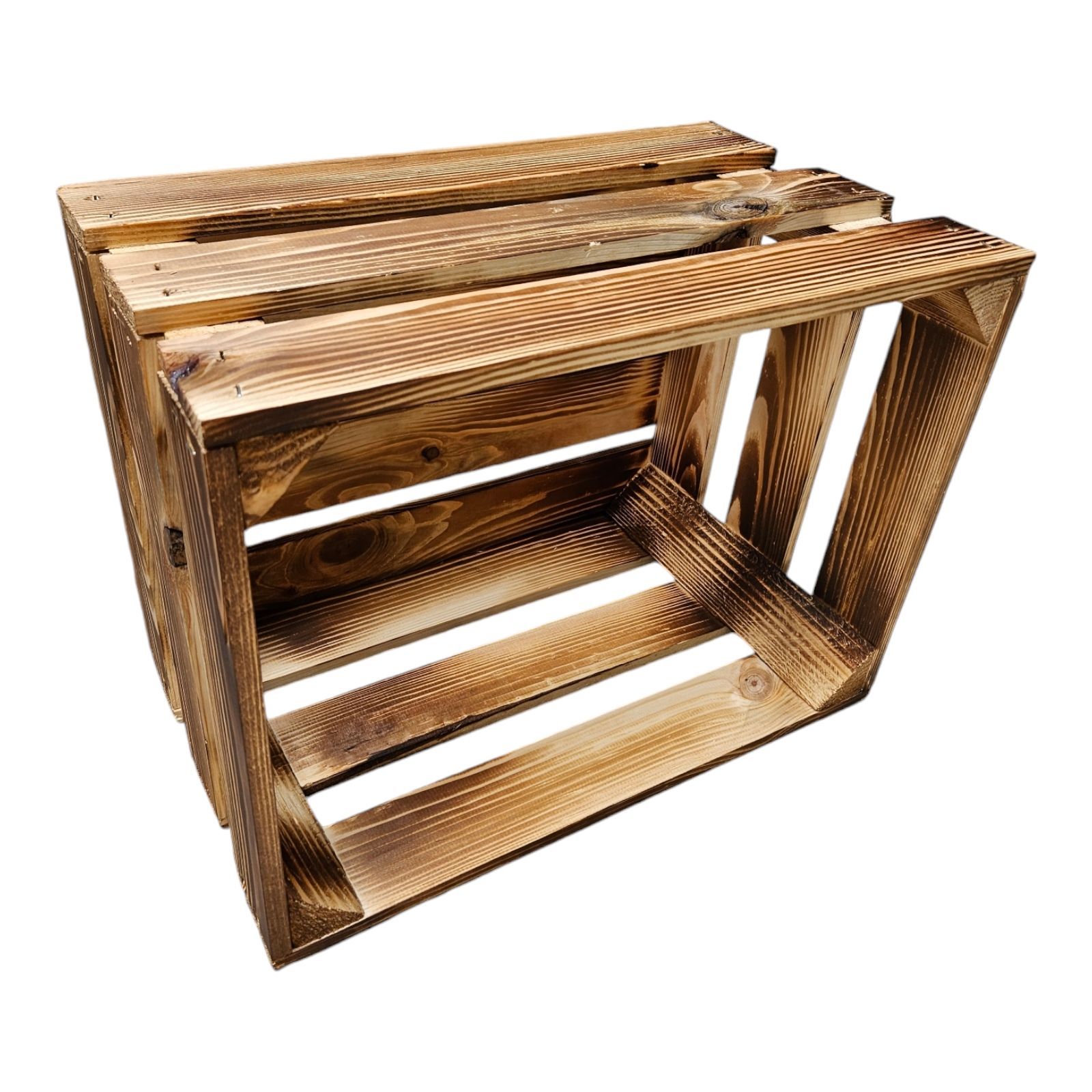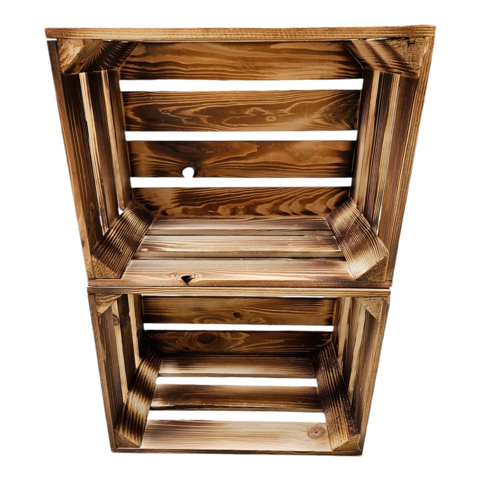 Holzkiste Dekokiste Box 40 x 30 x 25 cm 2er SET Geflammt