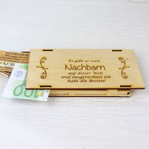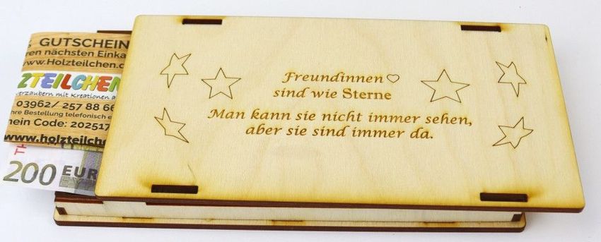 Holzkiste für Freunde Schokolade & Geldgeschenke