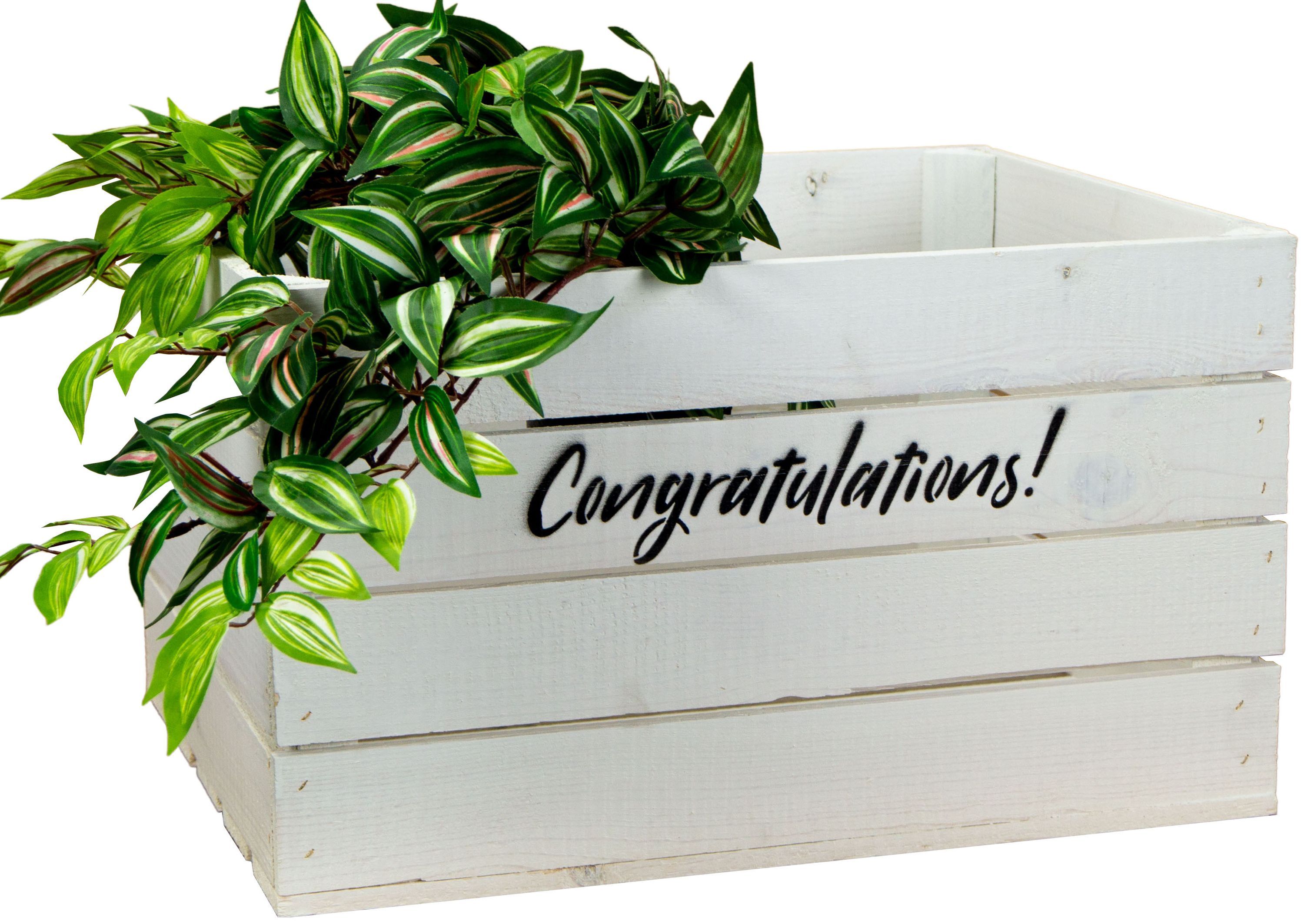 Holzkiste Johanna weiss "Congratulations" Geburtstagskiste Geschenkkiste Weinkiste