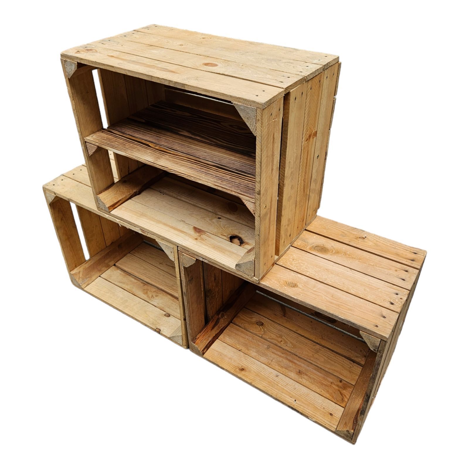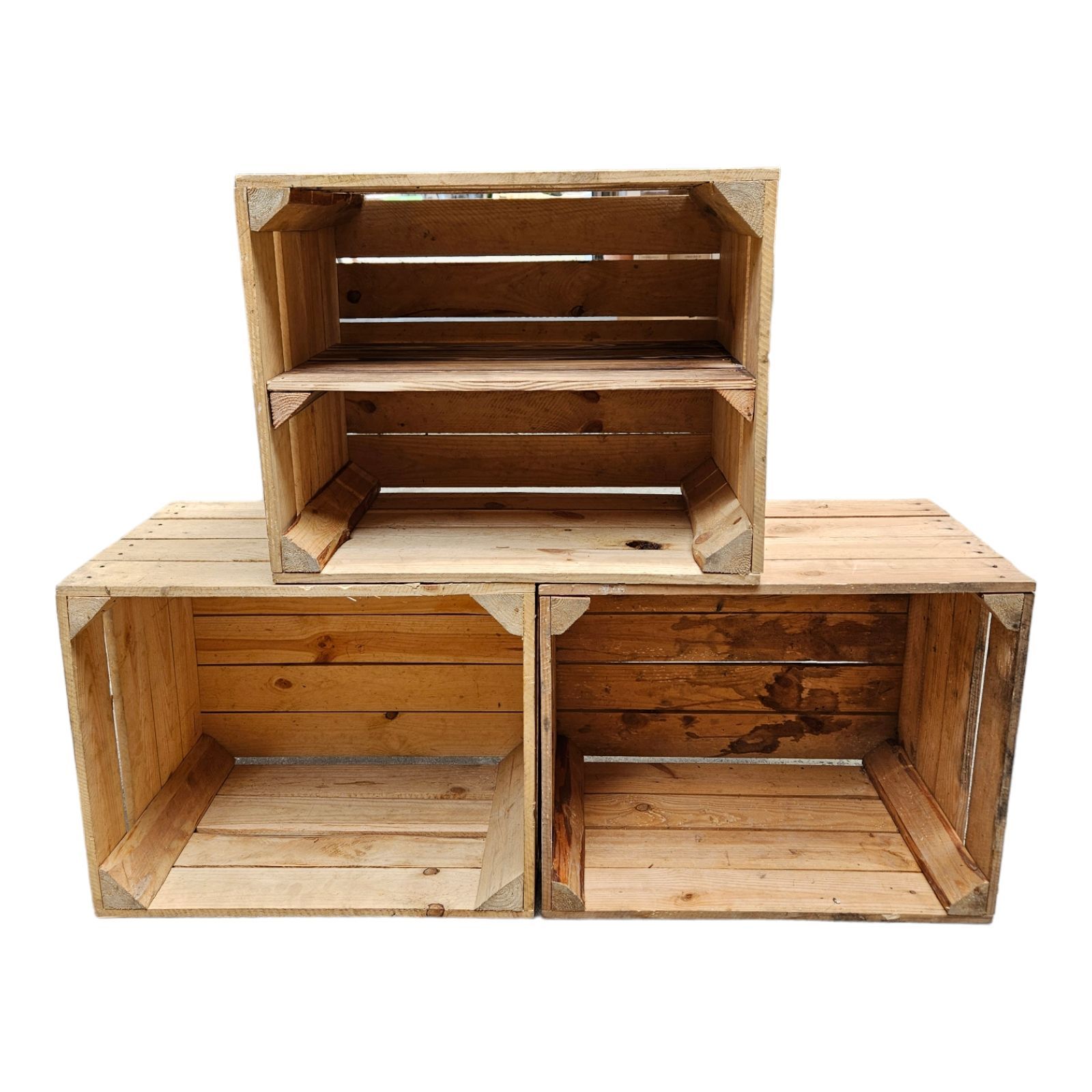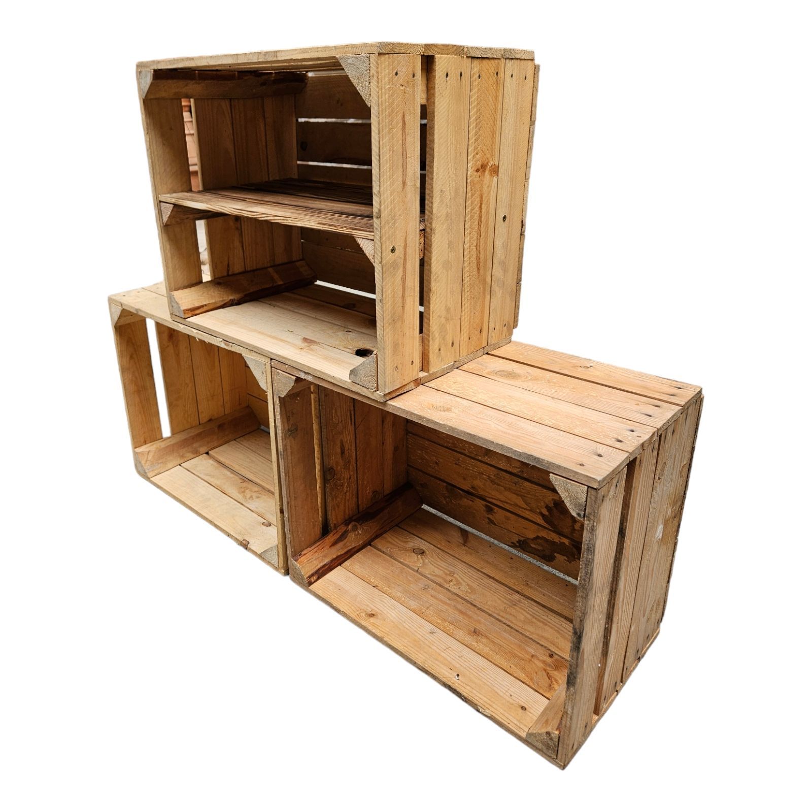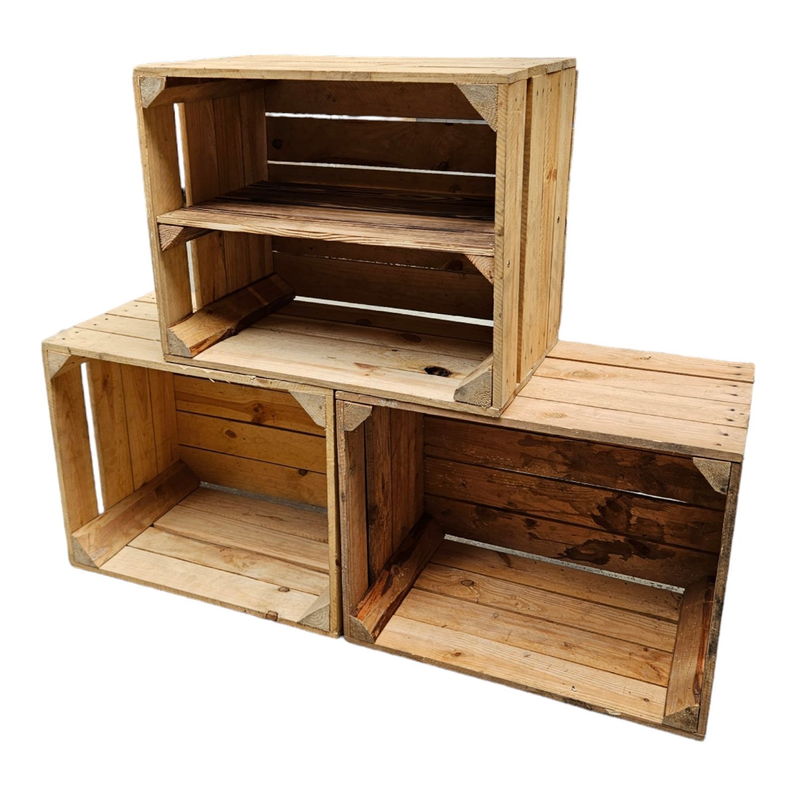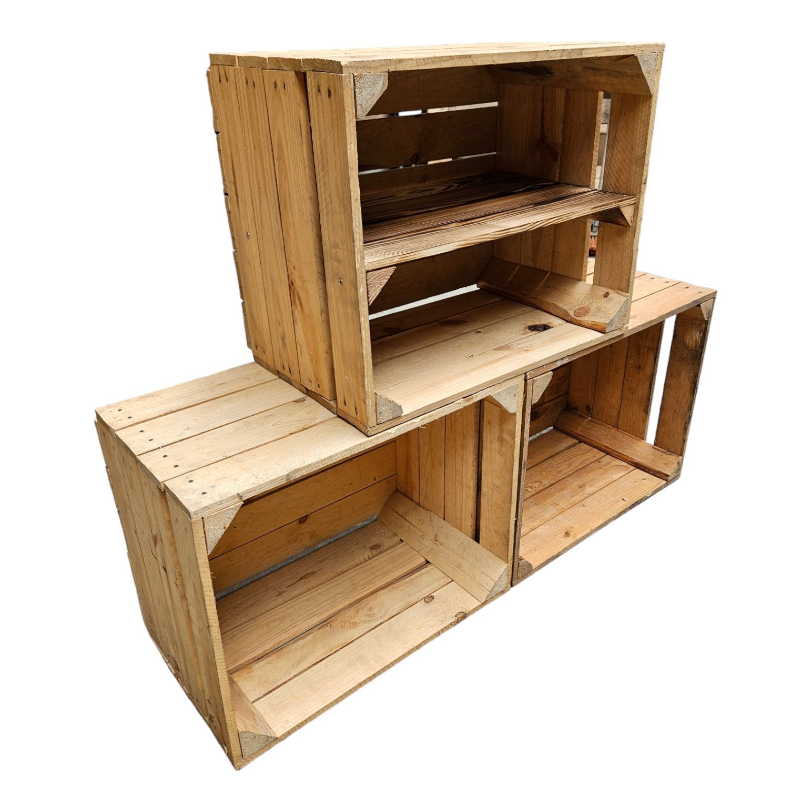 Holzkisten Vintage 3er Set 50 x 40 x 30cm mit Regal lang verbaut
