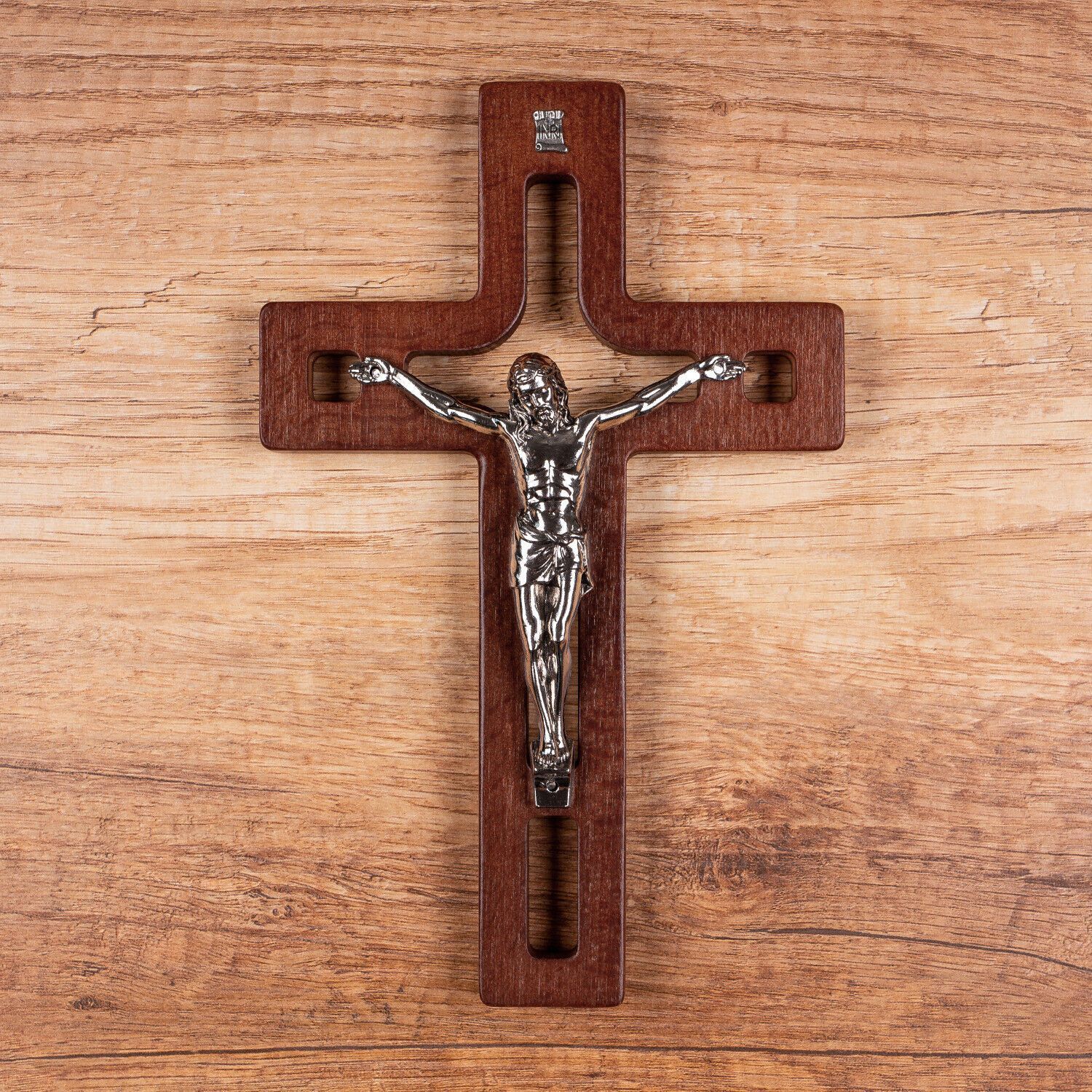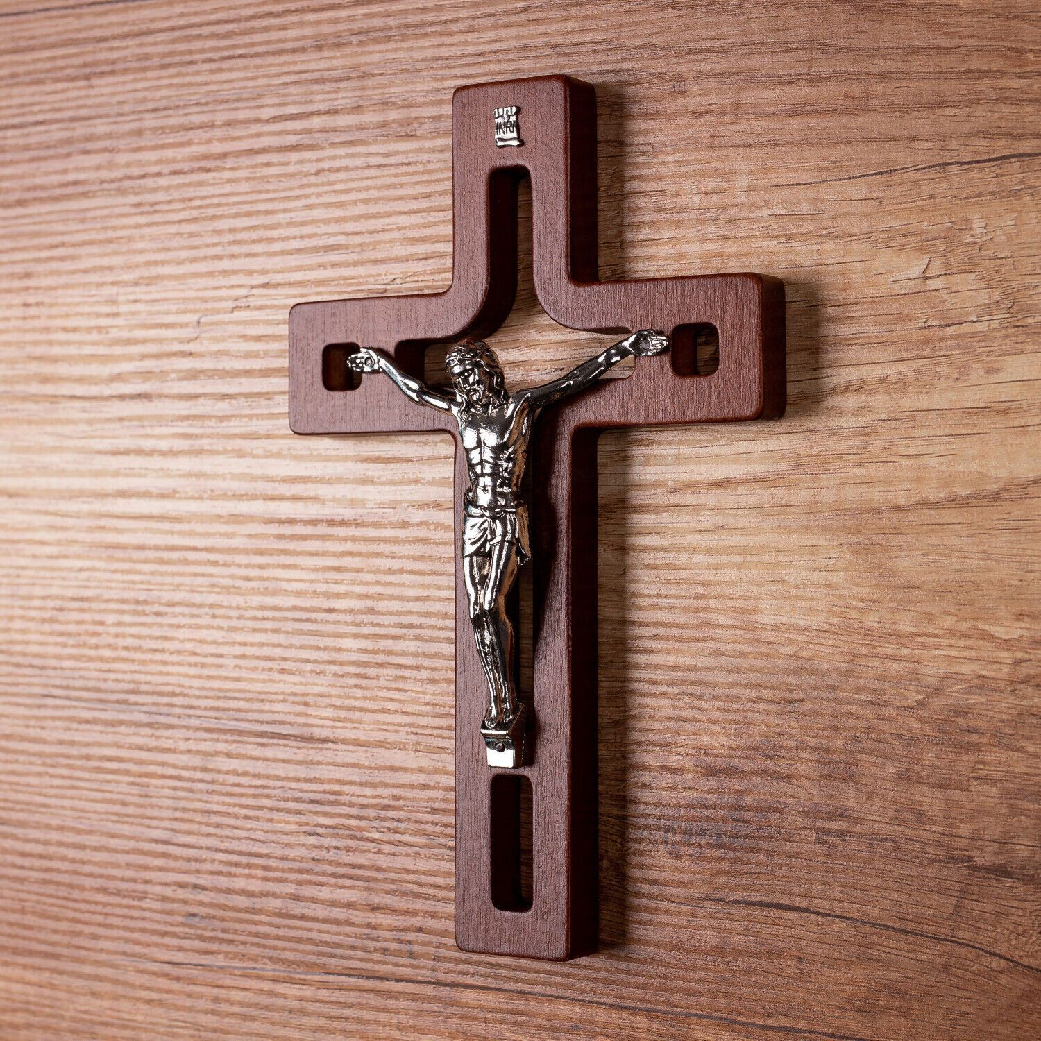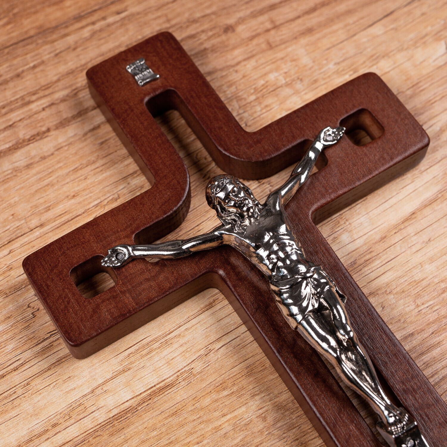 Holzkreuz Kreuz Wandkreuz Handarbeit Kruzifix Buchenholz mit Pasion 18x12x1,4 cm