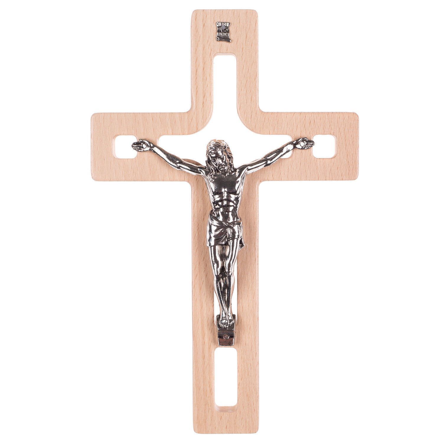 Holzkreuz Kreuz Wandkreuz Handarbeit Kruzifix Buchenholz mit Pasion 25x16x1,6 cm