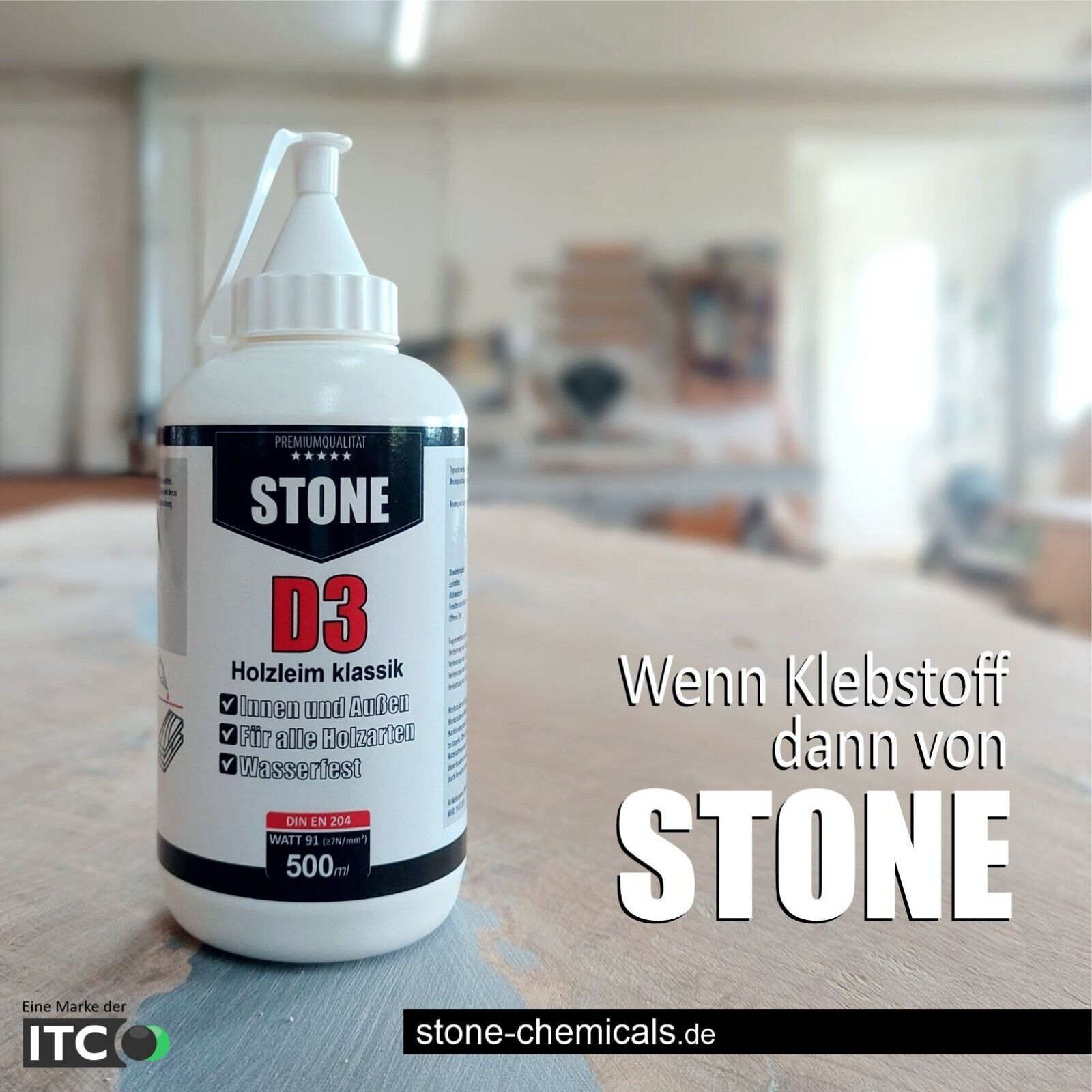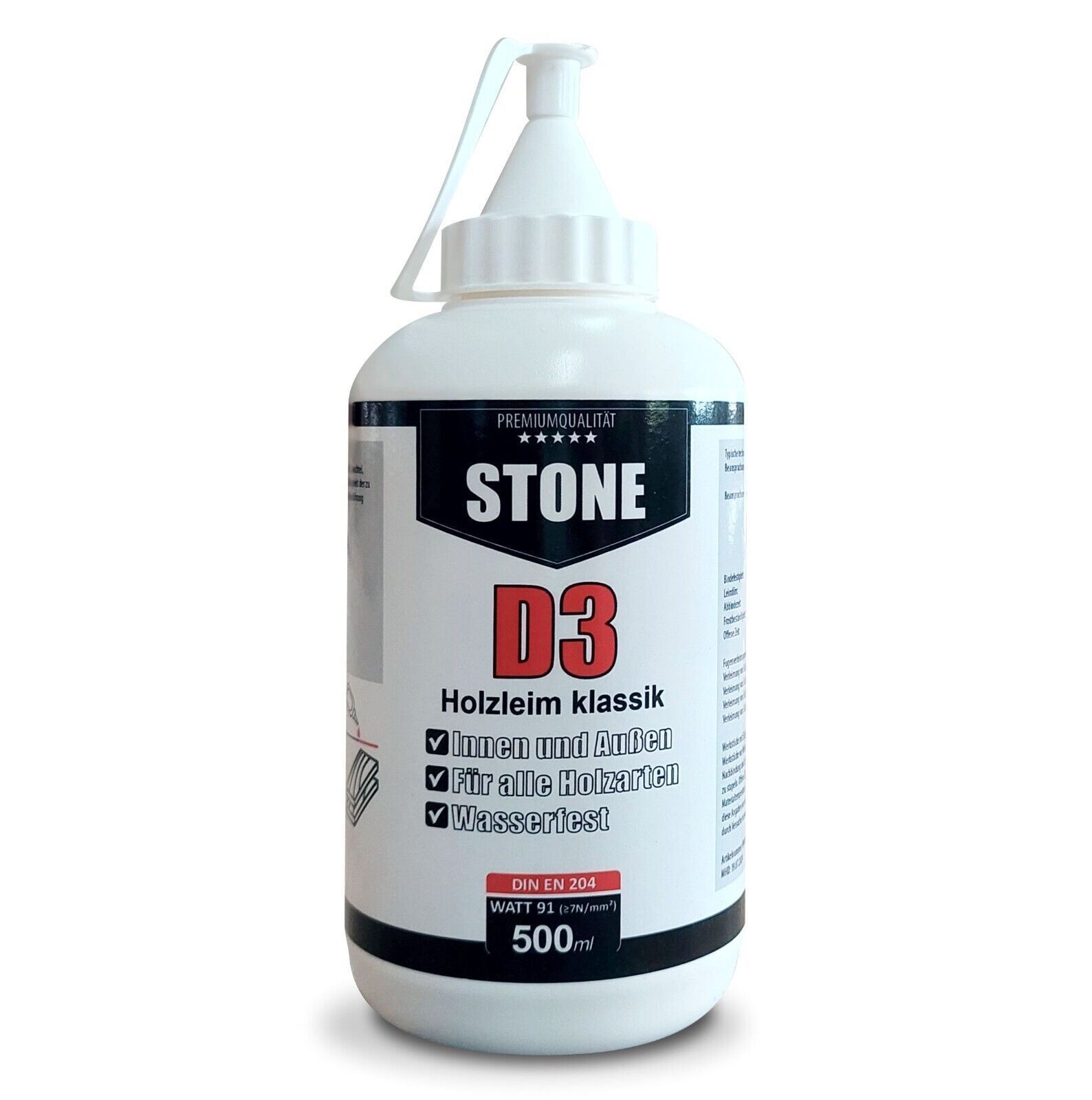 Holzleim Weißleim Kleber STONE D3 klassik wasserfest für alle Holzarten 500ml