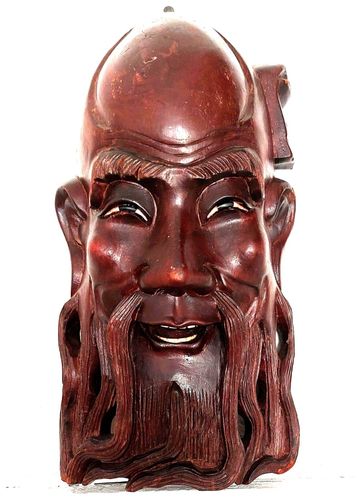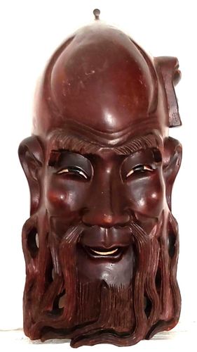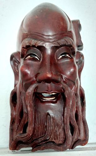 Holzmaske aus China , mit Einlegearbeiten ( Augen und Zähne ) Größe : 22 x 12 x 6 cm Gewicht: 0,435 Kg