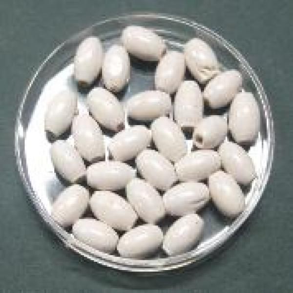 weiße Holzoliven, Beutelinhalt 100 Stück, Größe von 8 x 5 mm.