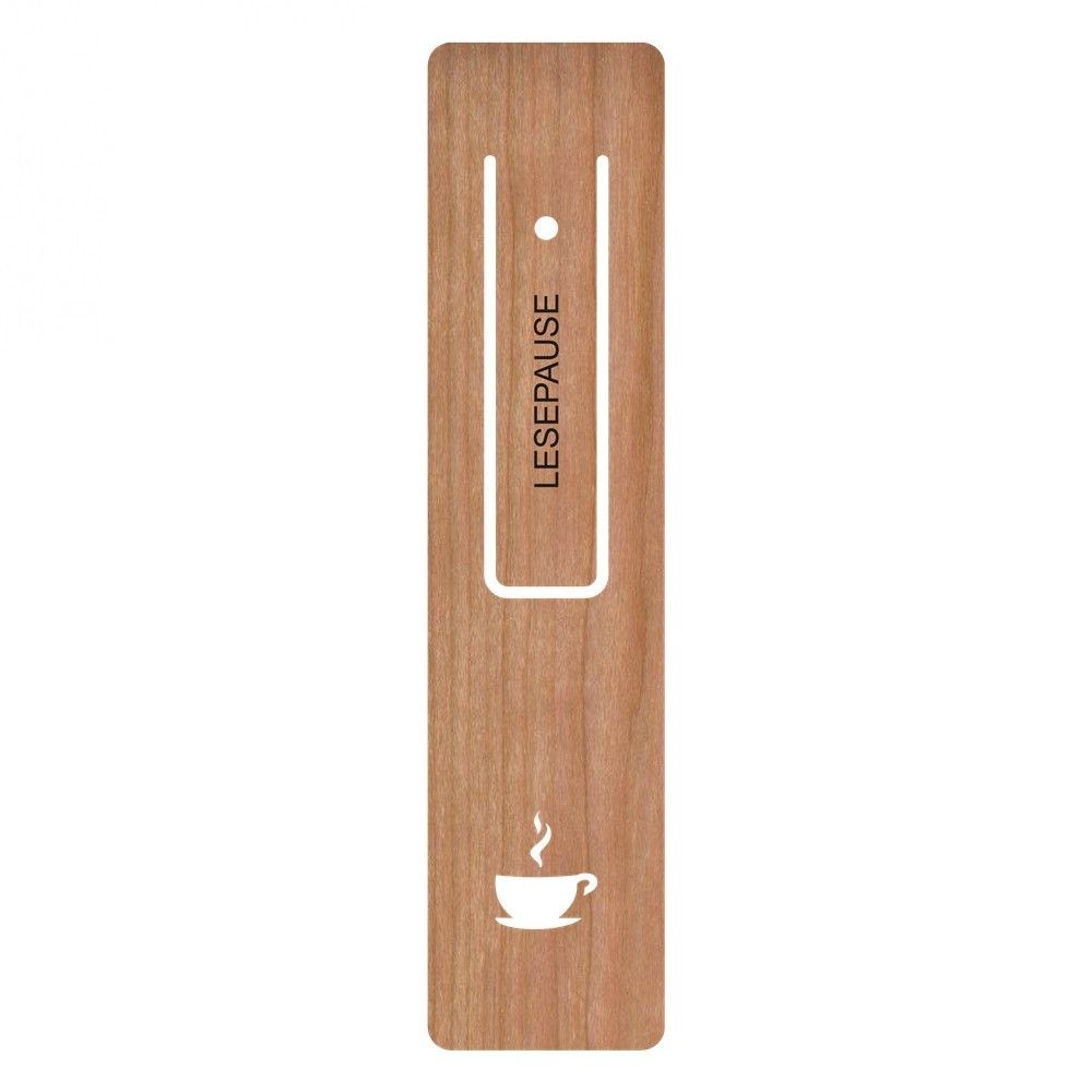 Holzpost Lesezeichen aus Kirschbaumholz "Lesepause"