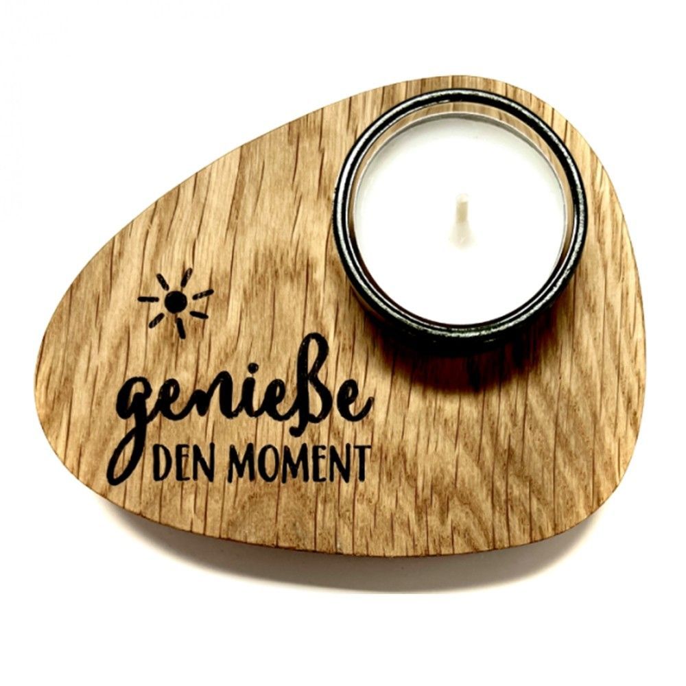 Holzpost Teelicht-Halterung aus Eichenholz (verschiedene Motive)