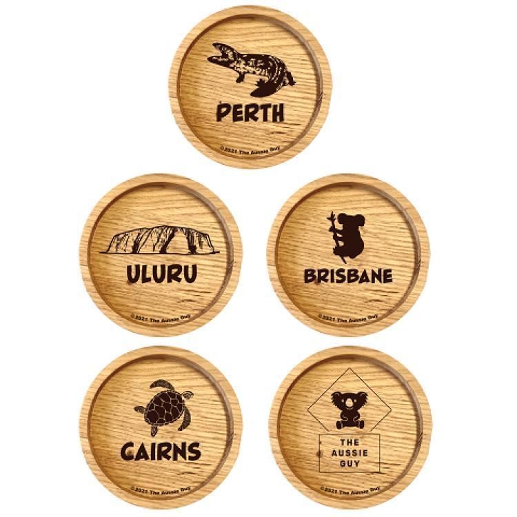 holzpost Untersetzer aus Eiche Set 'Outback to Tropics' 5 St