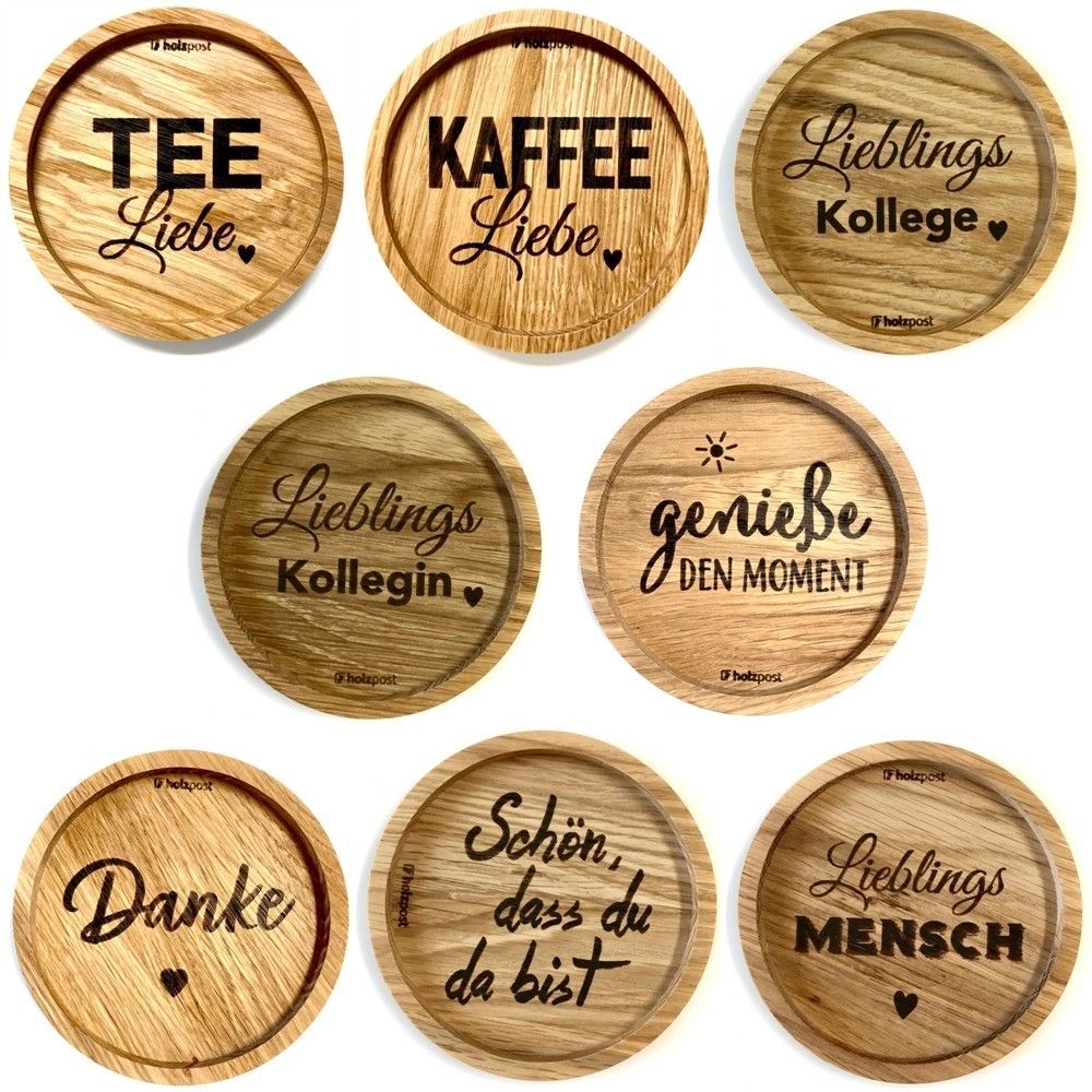 • Holzpost Untersetzer aus massiver Eiche verschiedene Motive