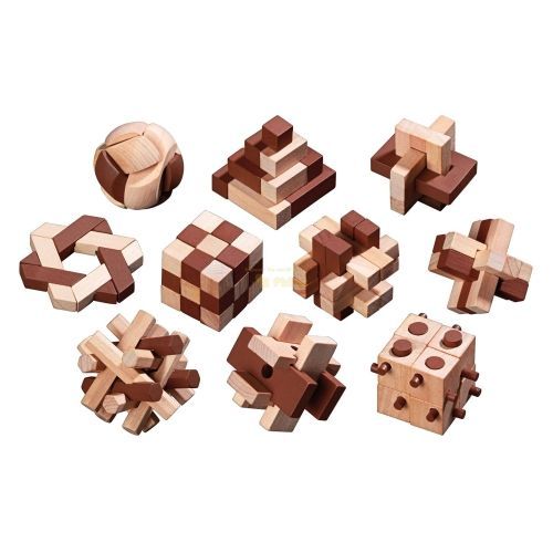 Holzpuzzle-Sortiment - 10 Puzzle - Denkspiel - Knobelspiel - Geduldspiel