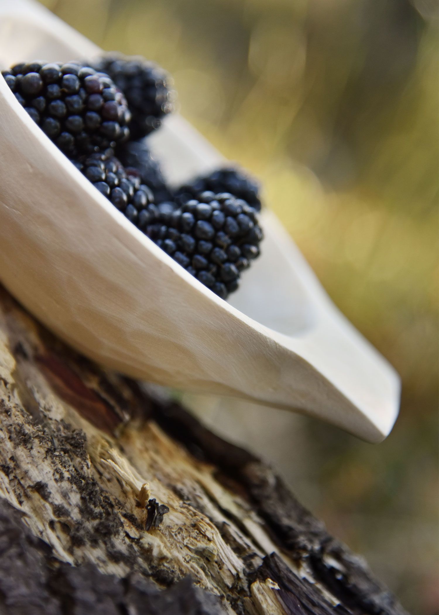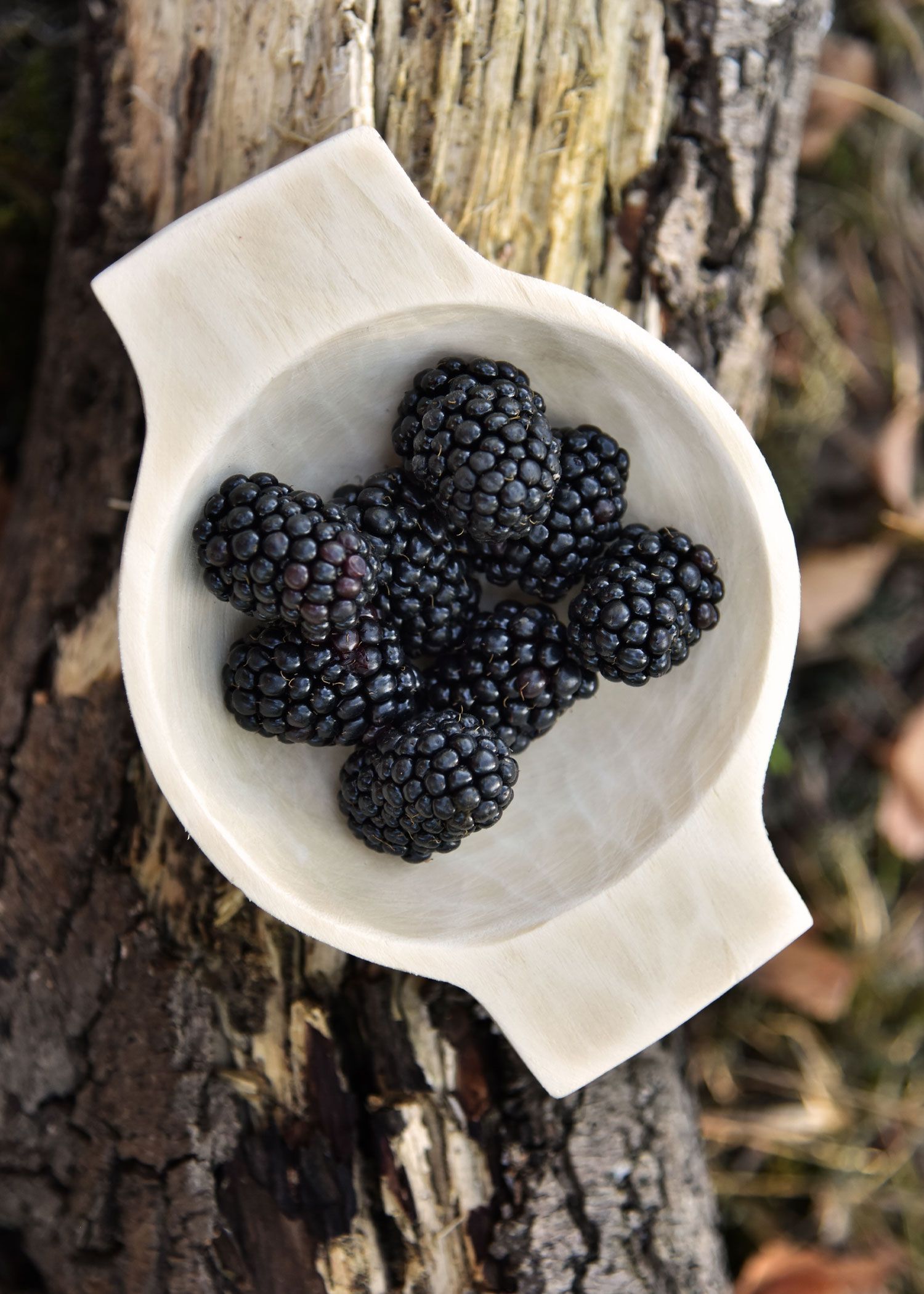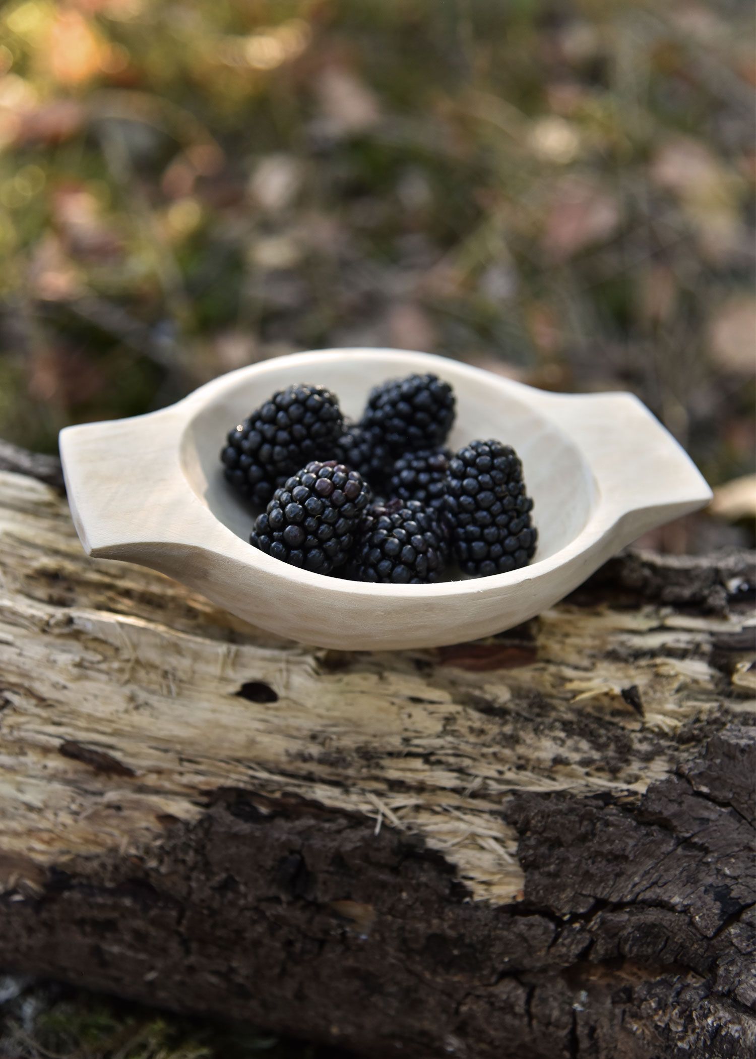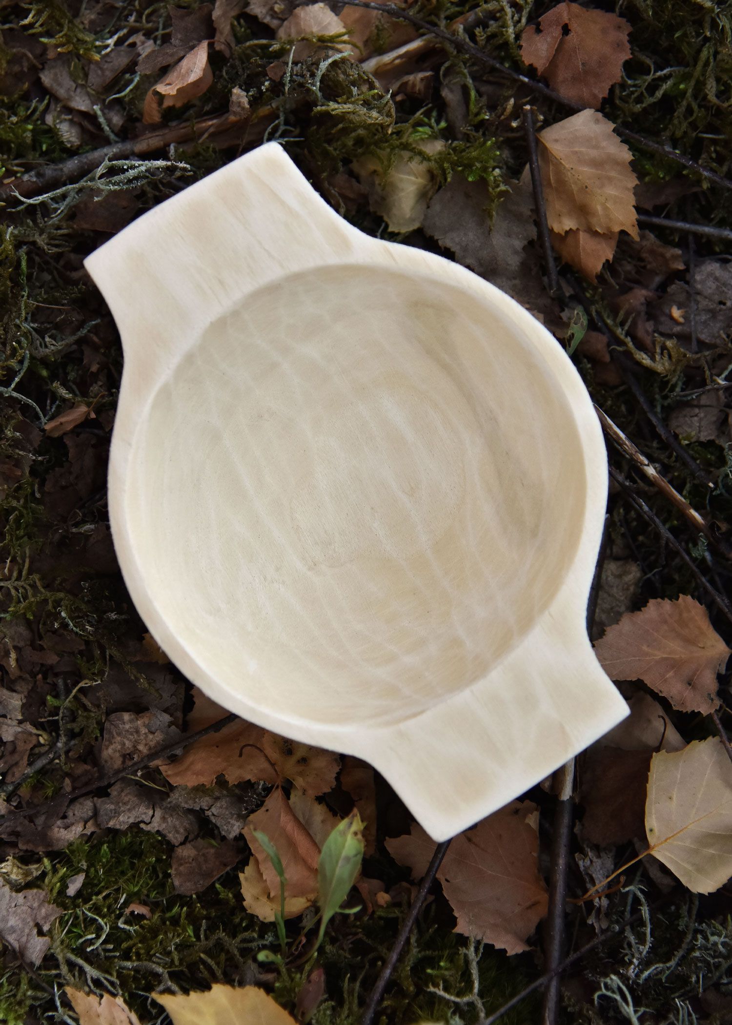 Holzschale mit Griffen, handgehauen, ca. 16 x 10 cm