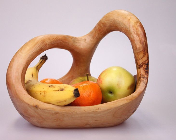 Holzschale Schale Gemüseschale aus Olivenholz mit Griff Holz Obstkorb
