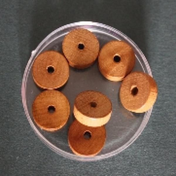 1 Beutel Holzscheiben, Inhalt 40 Stück, Farbe hellbraun, Perlengröße 12 x 4 mm.