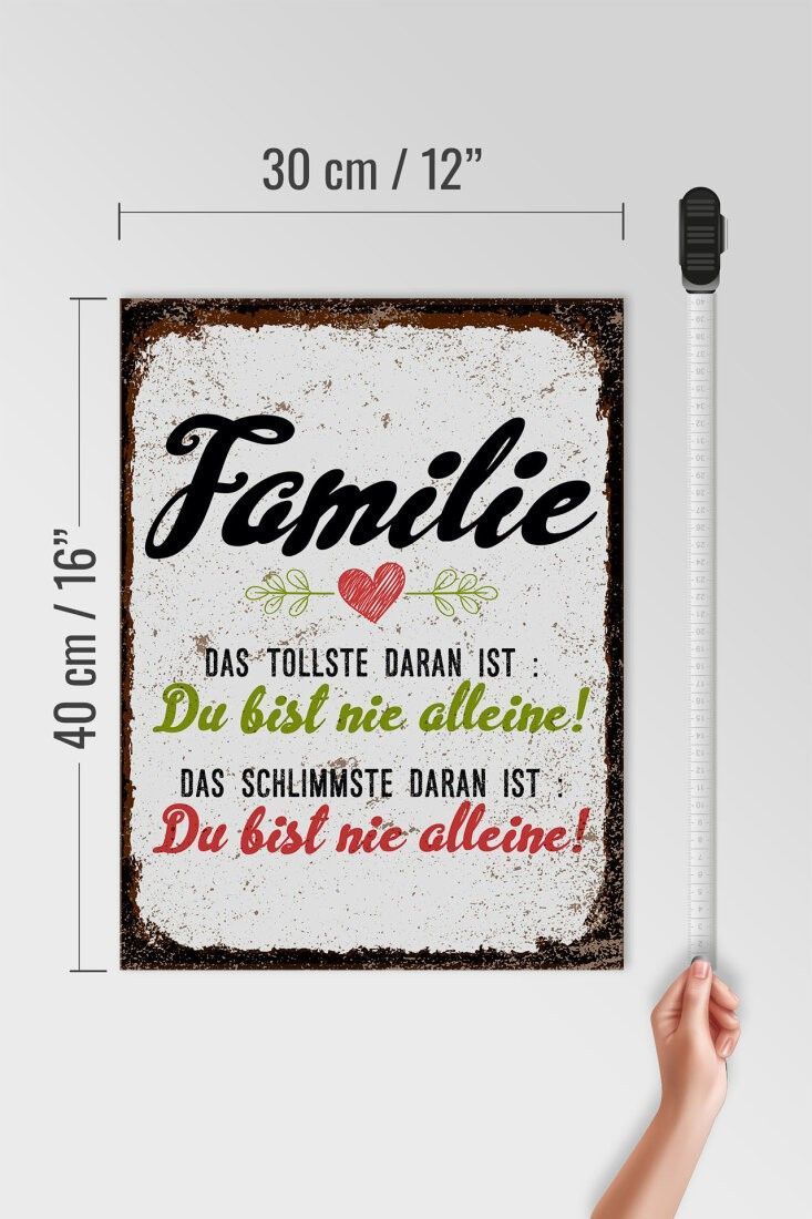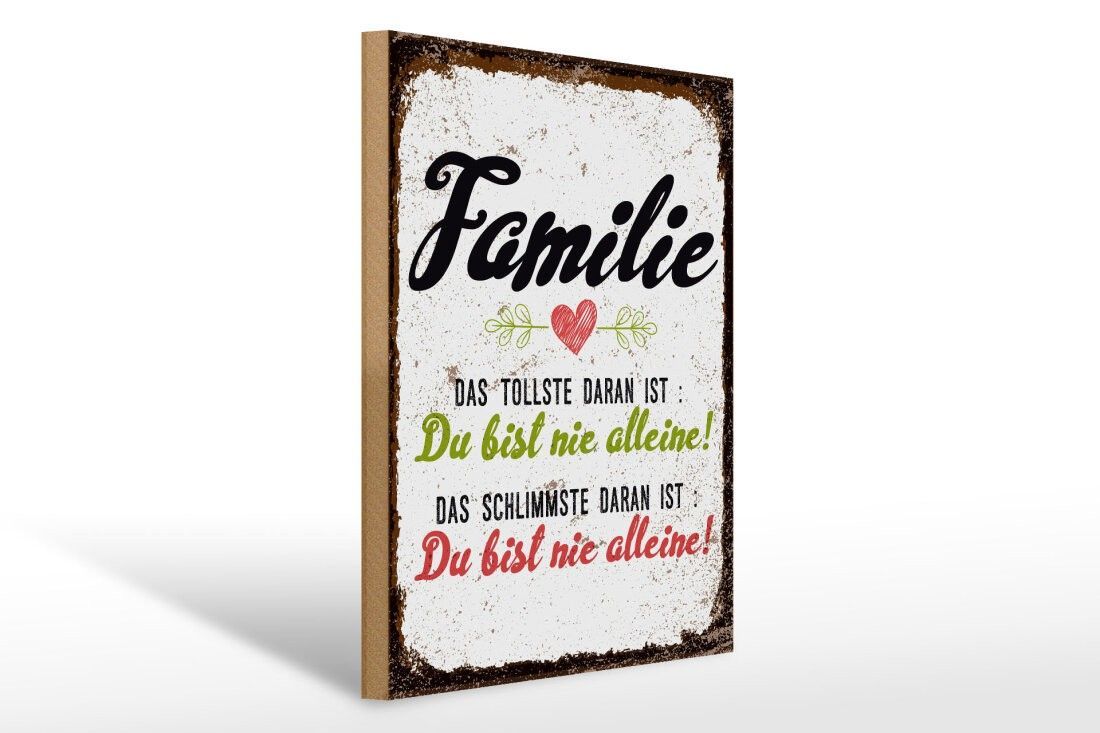 Holzschild Familie Du bist nie alleine, 3 vers Größen, Deko Spruch