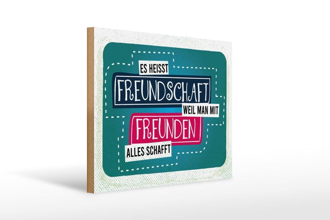 Holzschild Freundschaft weil man mit Freunden alles schafft, 3 vers Größen, Spruch