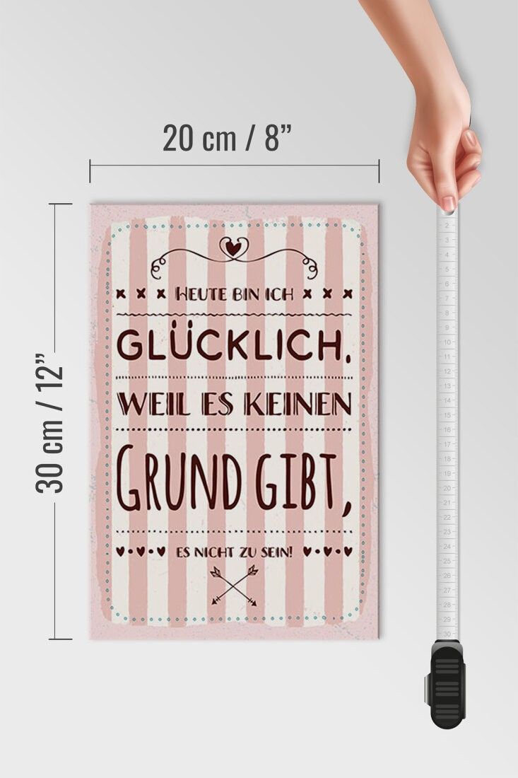 Holzschild Heute bin ich glücklich, 3 vers Größen, Spruch