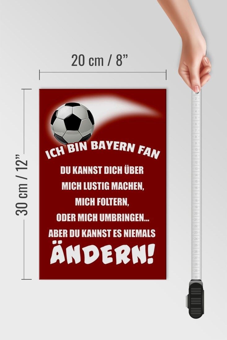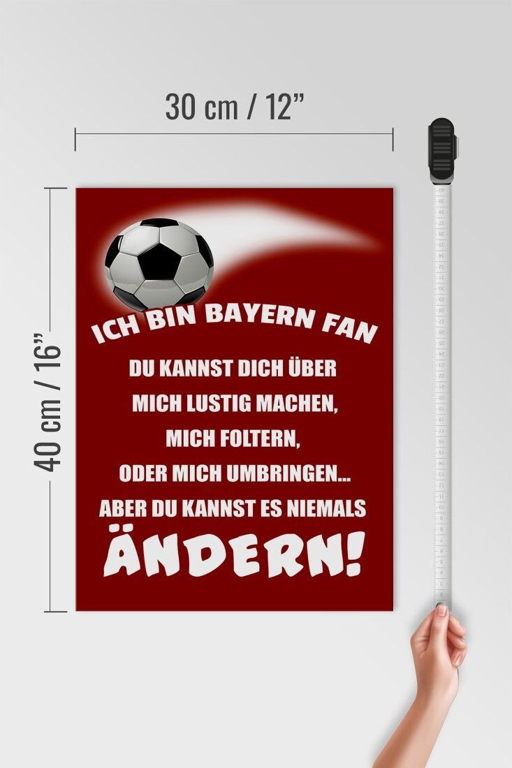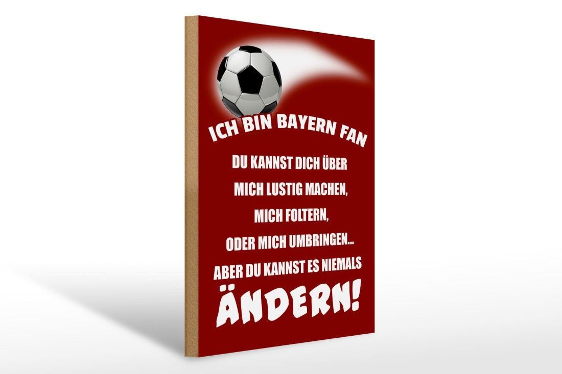 Holzschild Ich bin Bayern Fan Fußball, 3 versch Größen, Spruch Hobby Sport