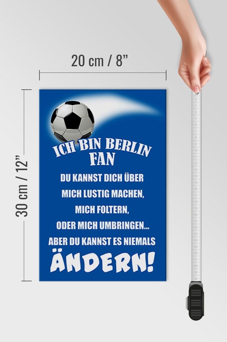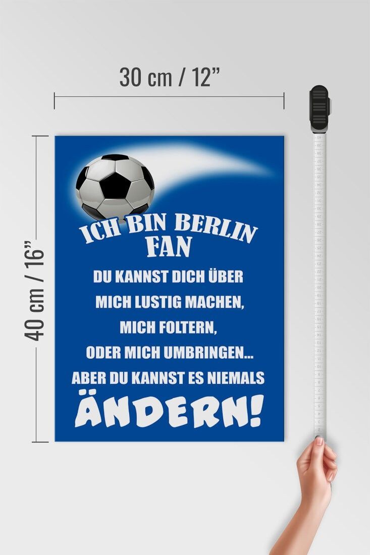 Holzschild Ich bin Berlin Fan Fußball, 3 versch Größen, Spruch Hobby Sport