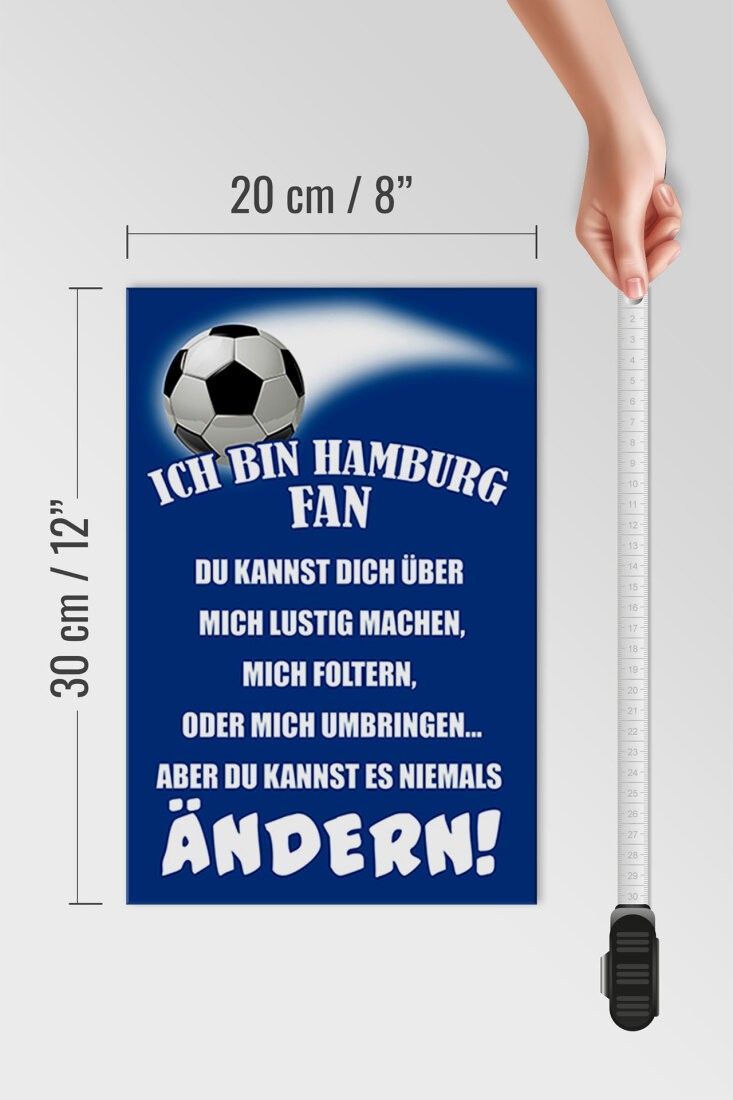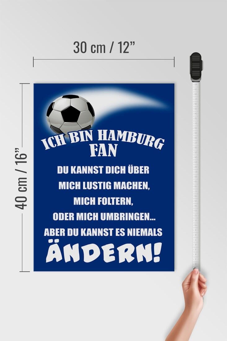 Holzschild Ich bin Hamburg Fan Fußball, 3 versch Größen, Spruch Hobby Sport