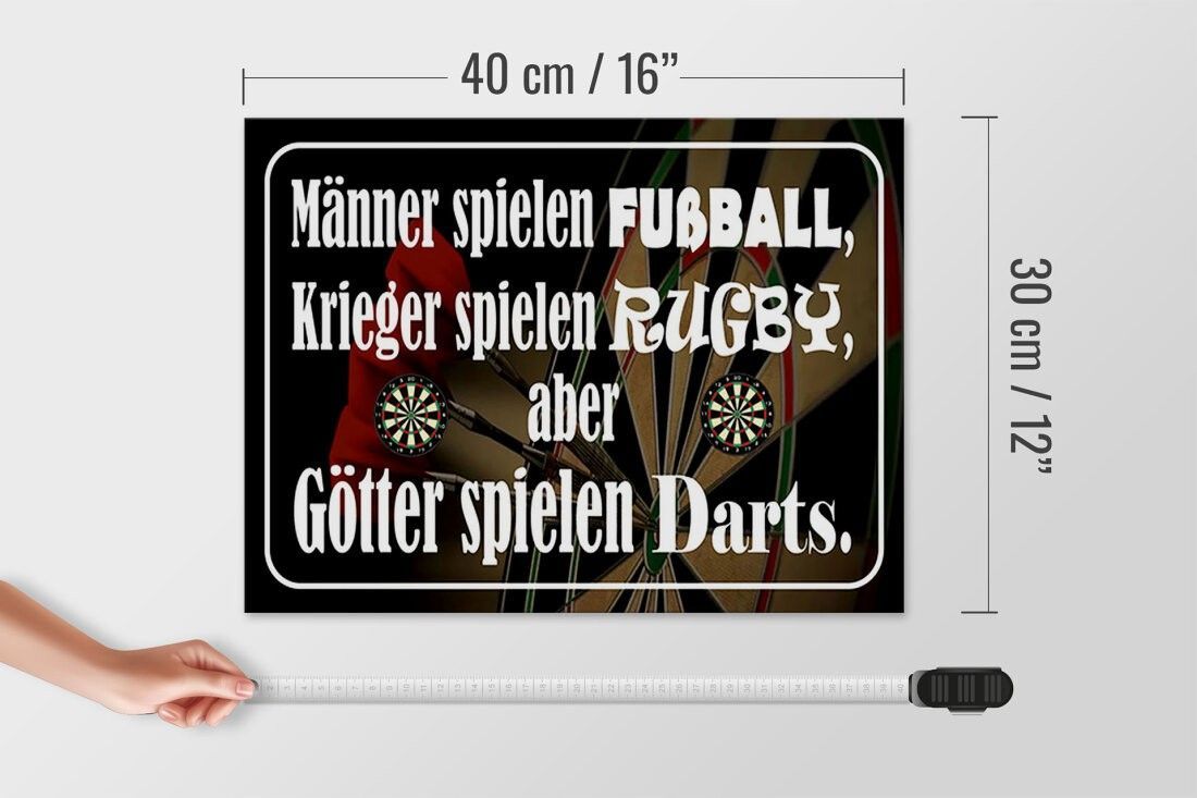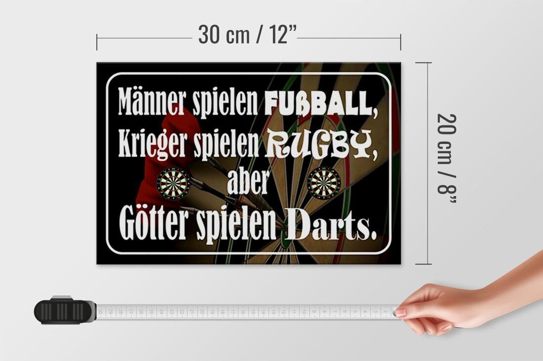 Holzschild Männer spielen Fußball aber Götter Dart, 3 versch Größen, Spruch Hobby