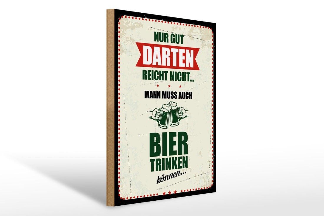 Holzschild Nur Gut Darten reicht nicht muss Bier trinken, 5 versch Größen, Hobby