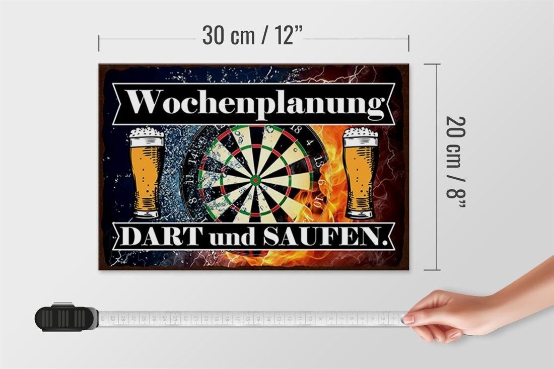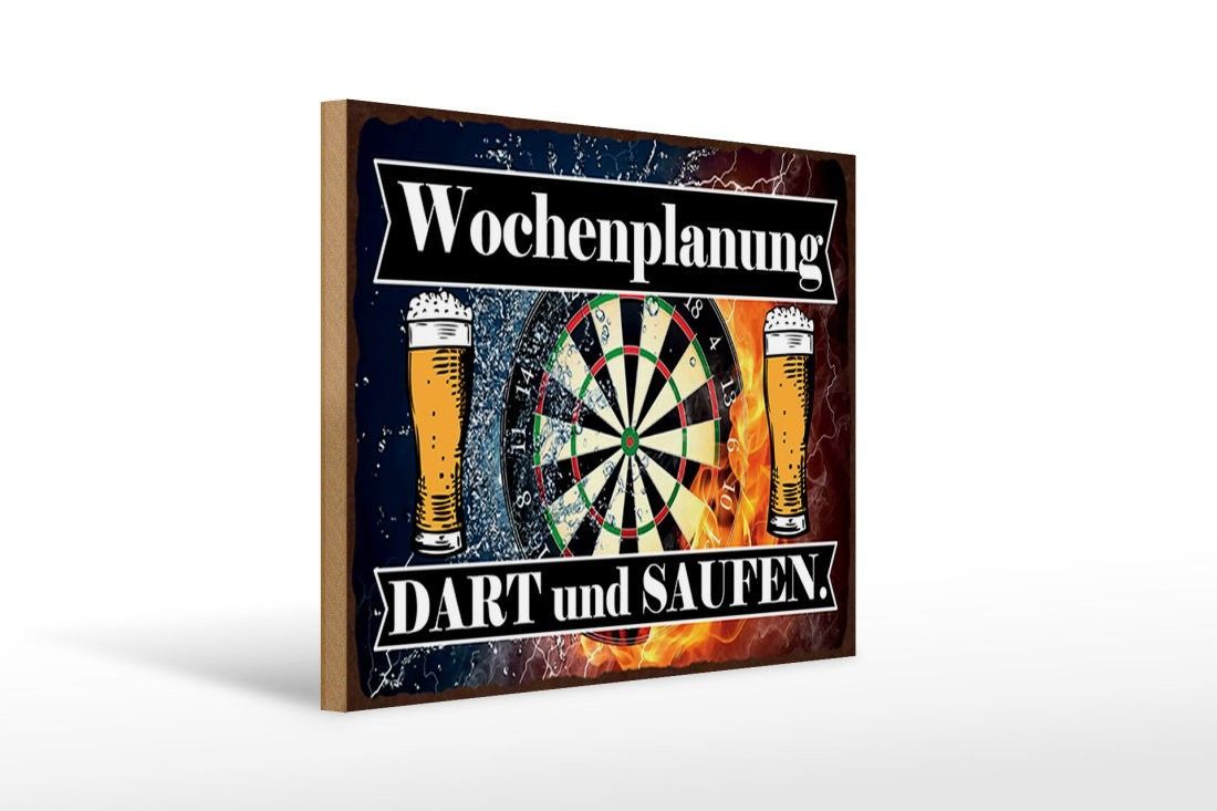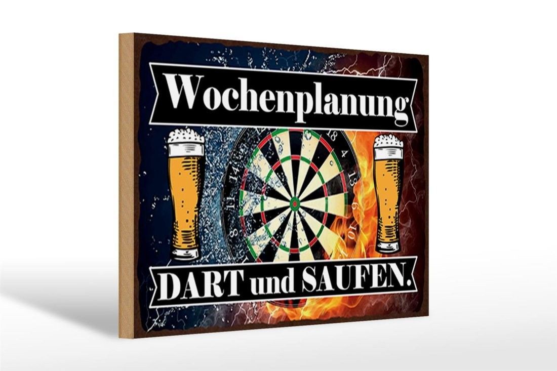 Holzschild Wochenplanung Dart und Saufen, 3 versch Größen, Spruch Hobby