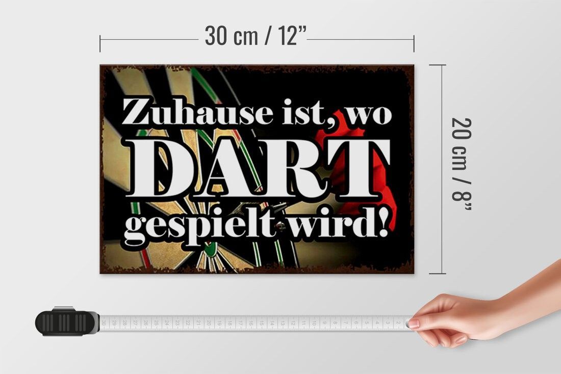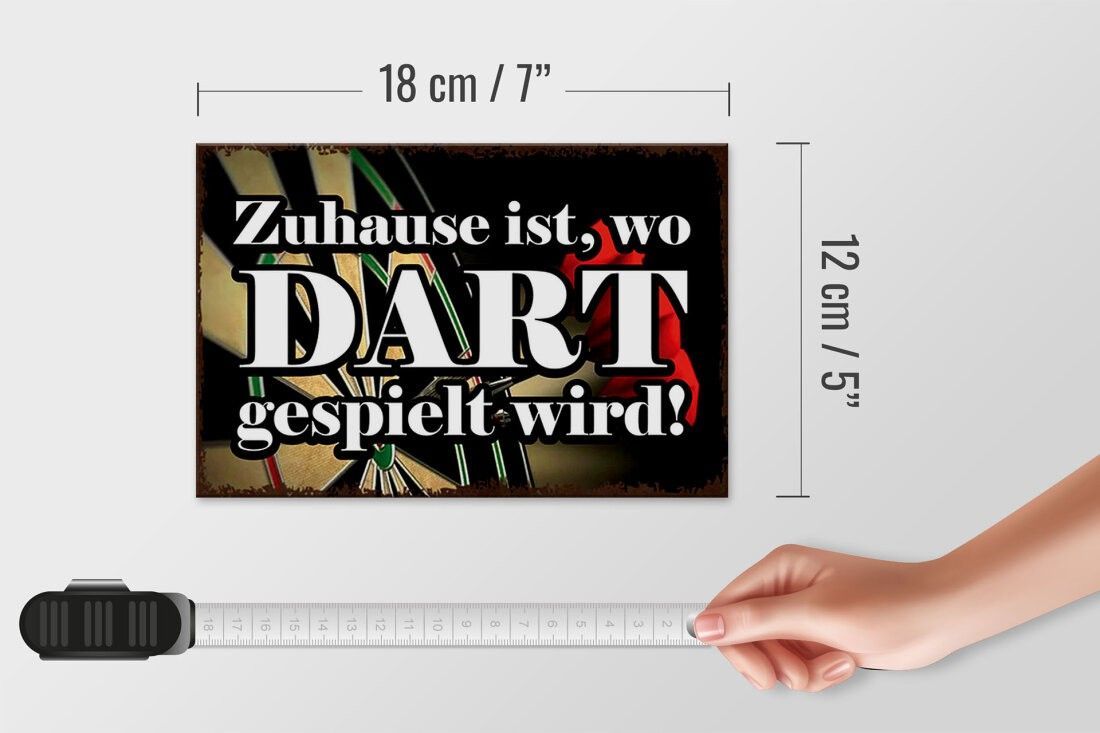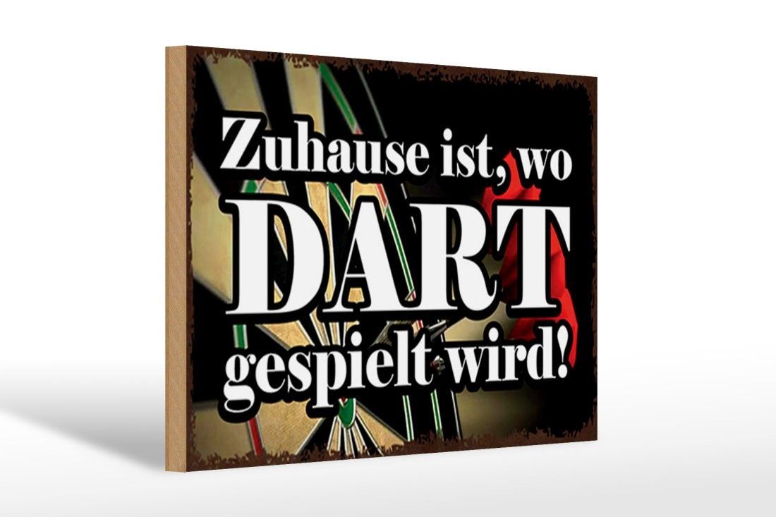 Holzschild Zuhause wo Dart gespielt wird, 3 versch Größen, Spruch Hobby