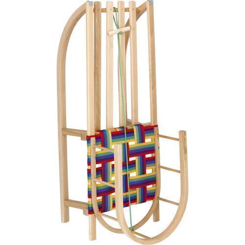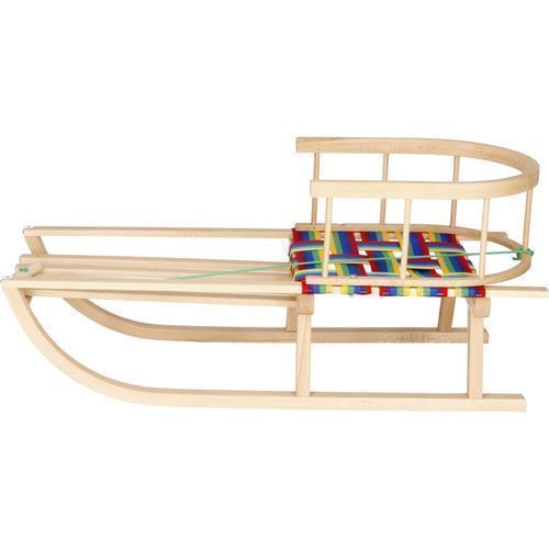 Holzschlitten Buchenholz Rückenlehne Zugseil Kinder Rodel Kinderschlitten