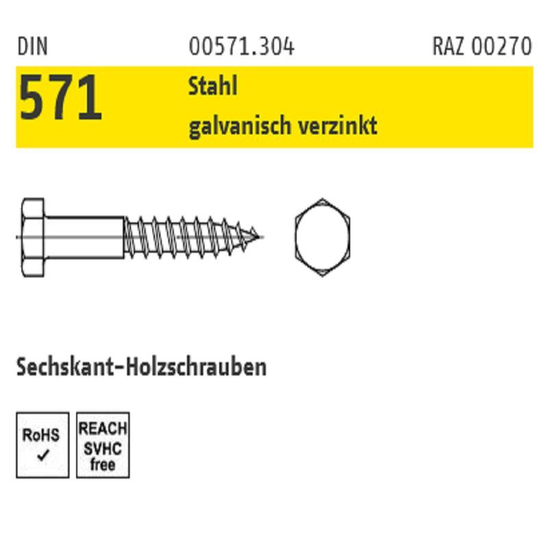 Holzschrauben Sechskant galvanisch verzinkt Ø8 mm Reyher