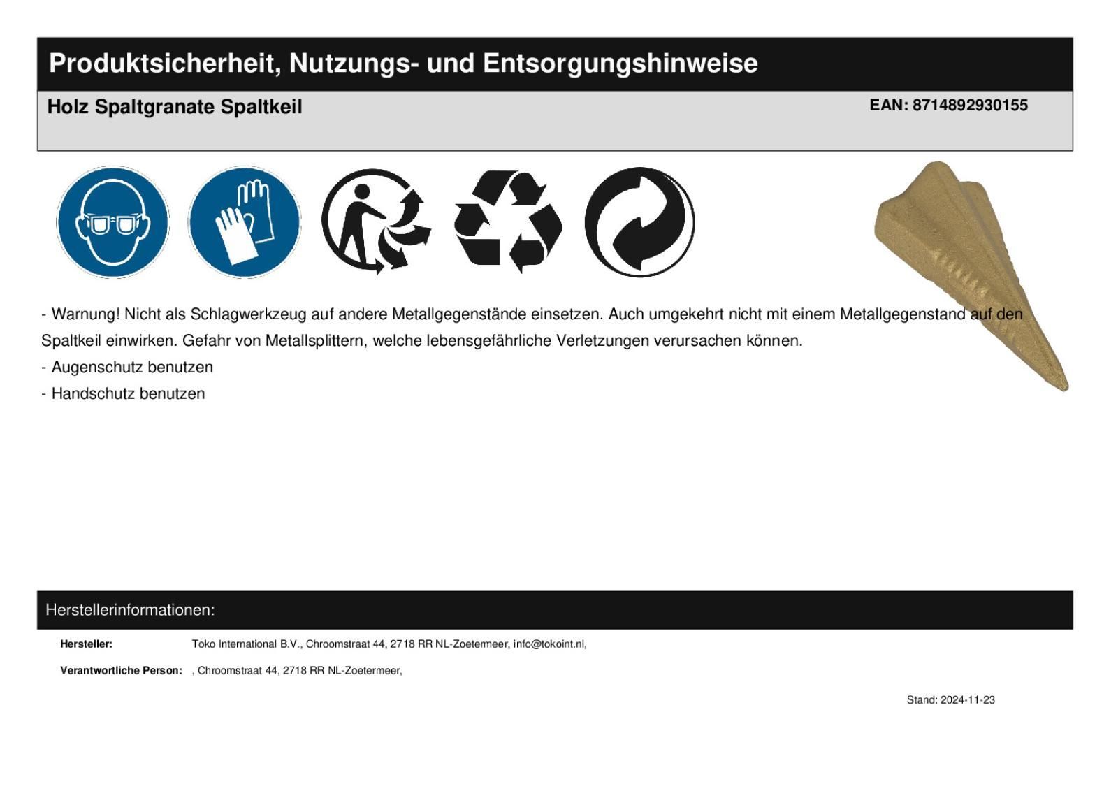 Holzspalter Holz Spaltgranate Spaltkeil Spaltkreuz Holzspaltkeil 1,6kg Keil