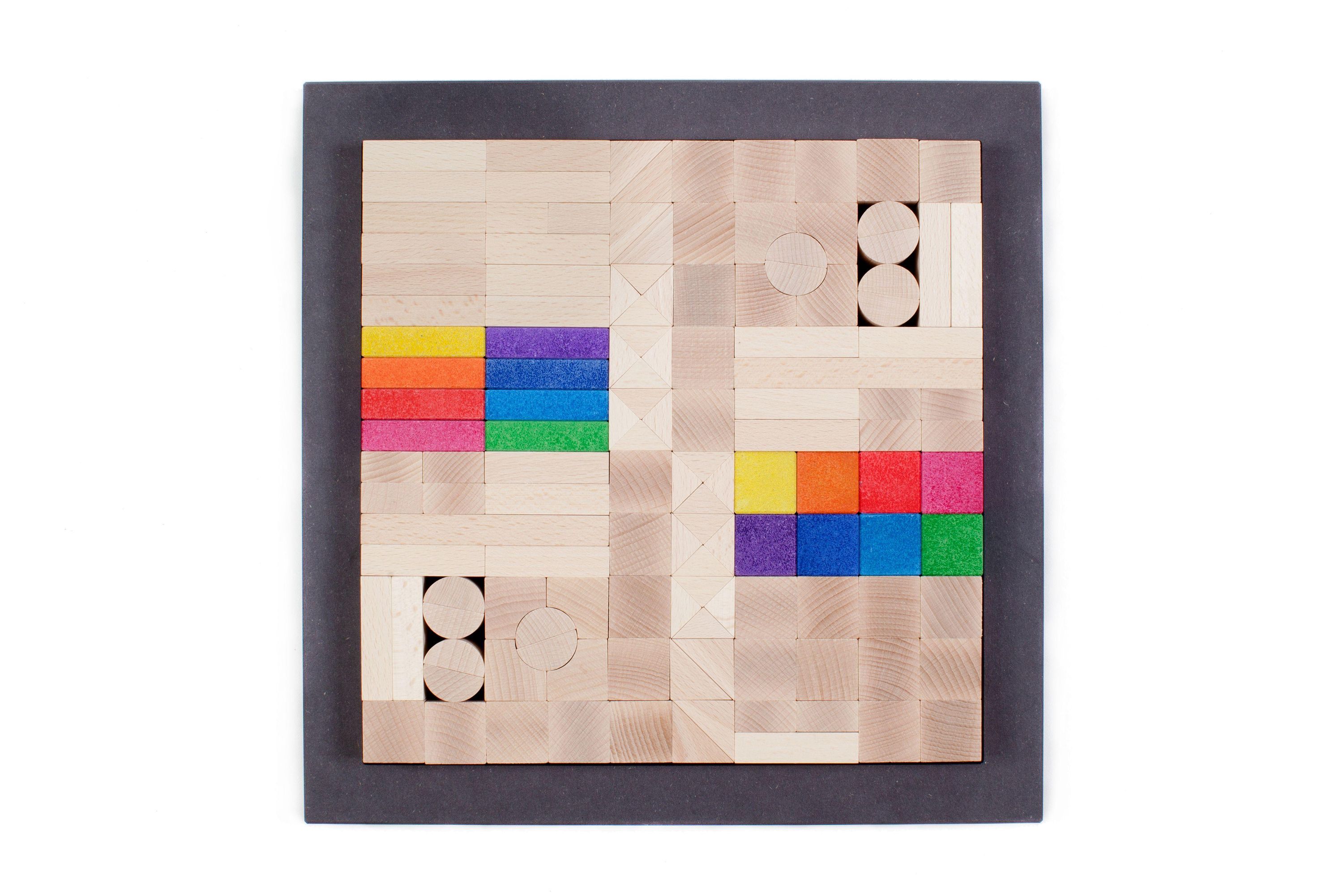 Holzspielzeug Baukasten mit Bausteinen BxHxT 30,5x30,5x1,6cm NEU Spielbrett