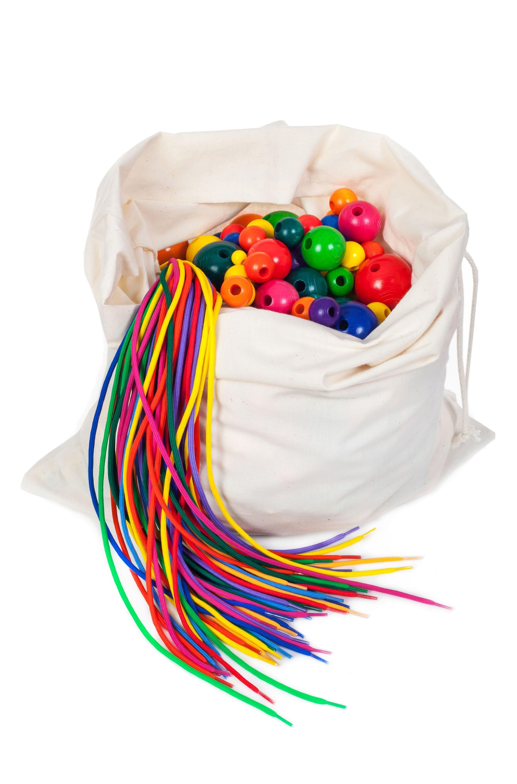 Holzspielzeug Fädel-Sack 500 Teile LxBxH 360x200x450mm NEU Stricken Wolle Strick