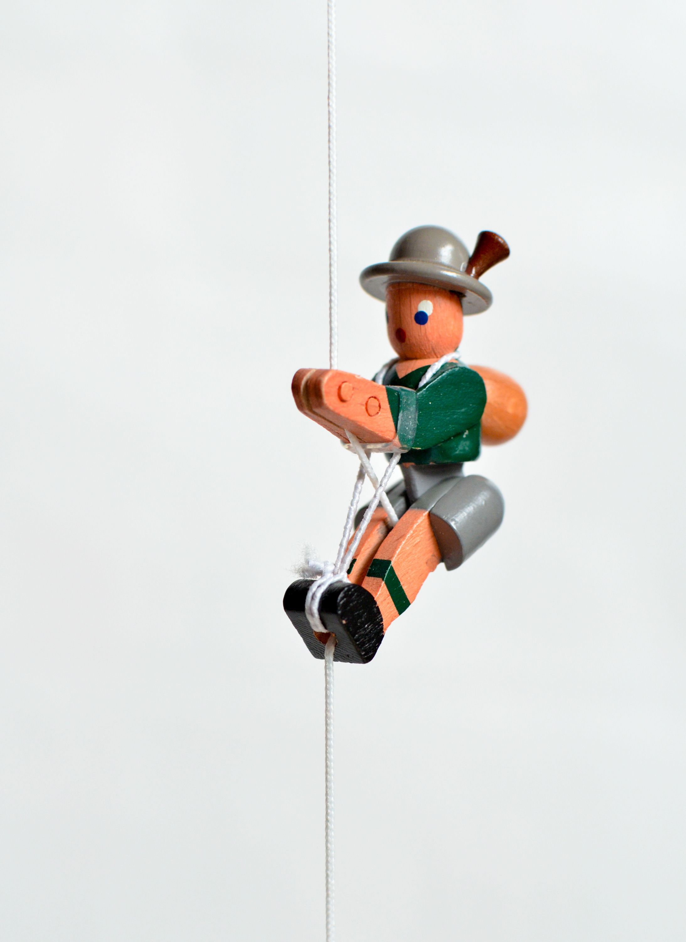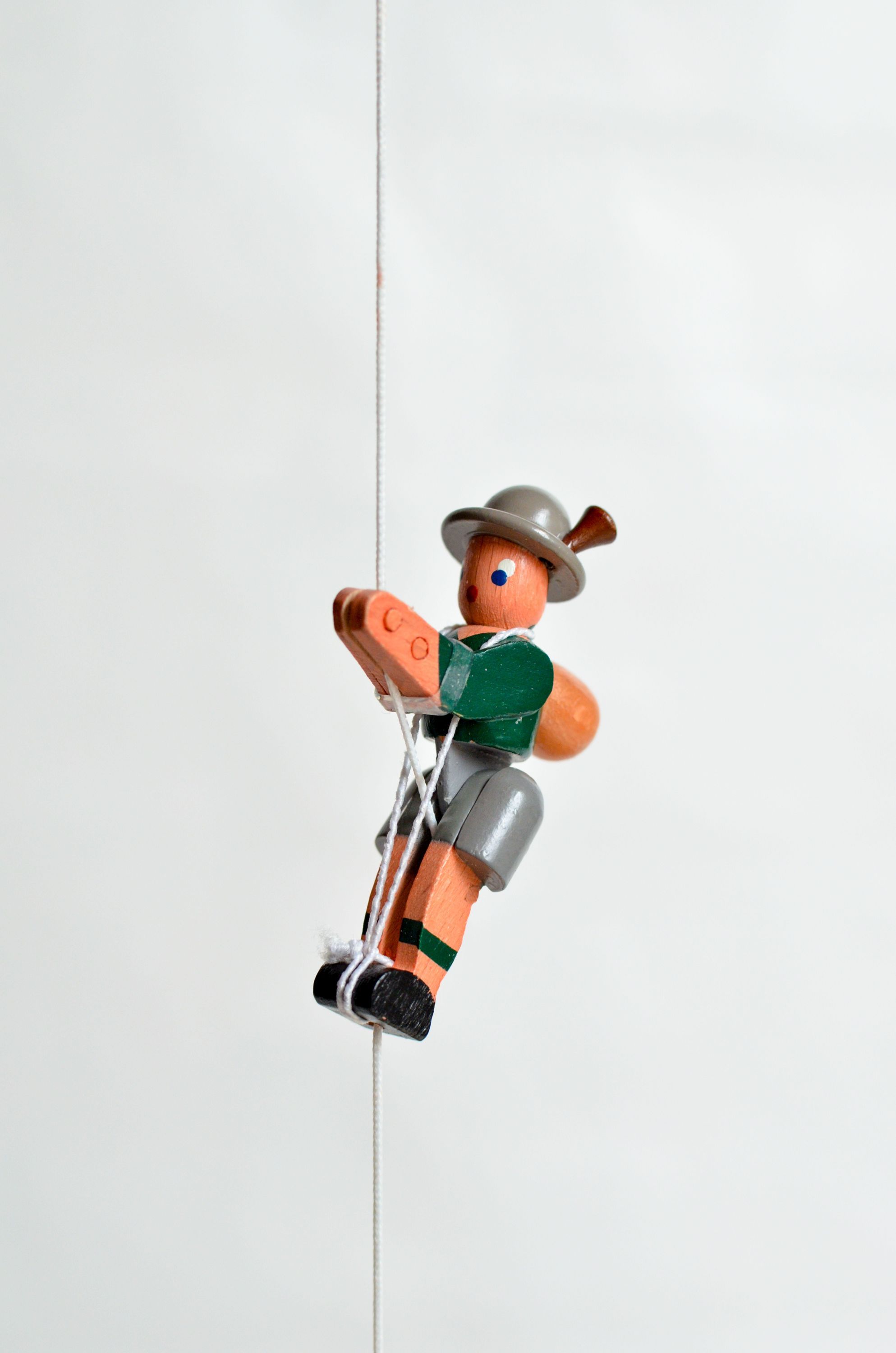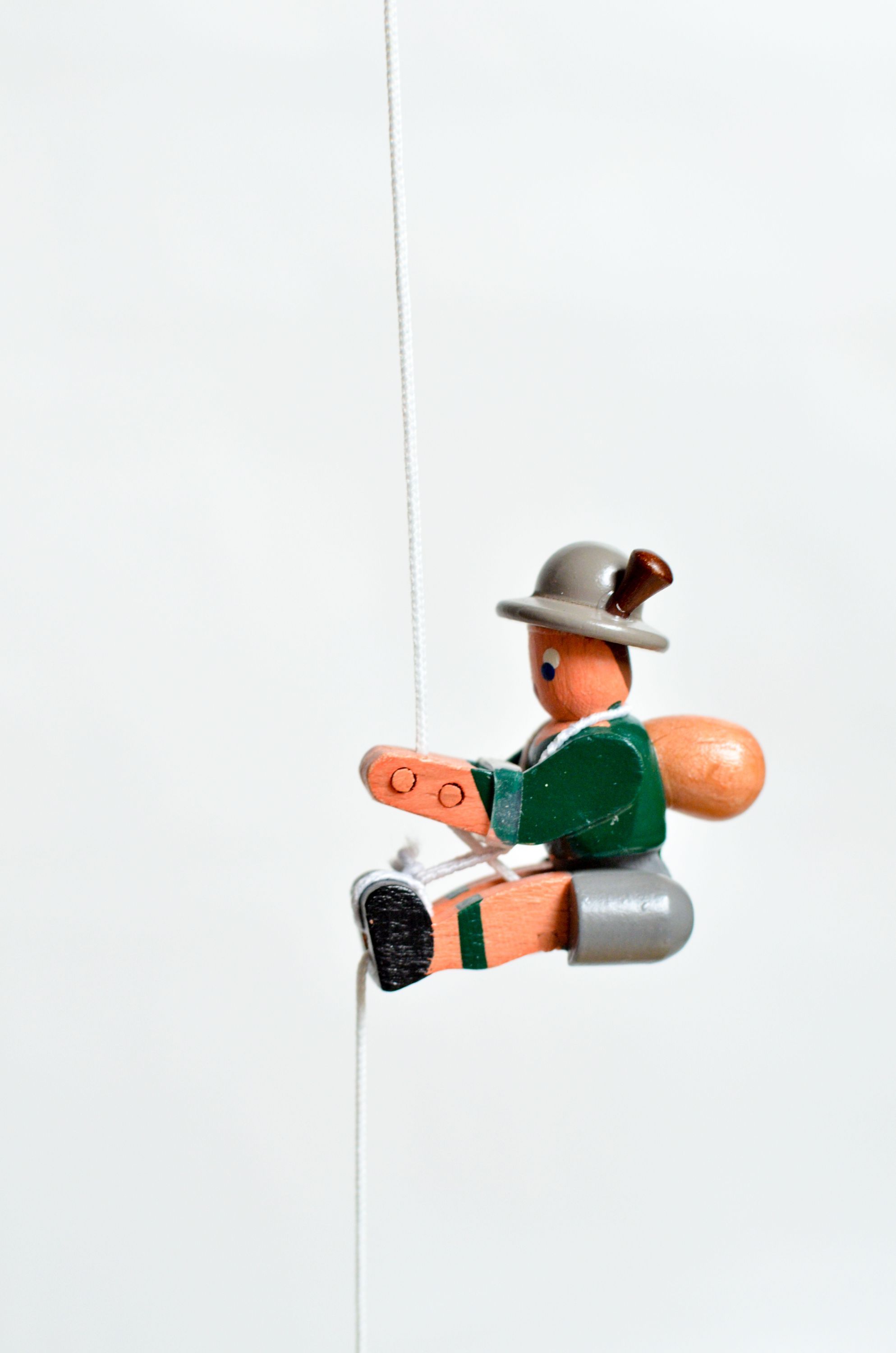 Holzspielzeug Kletterfigur Bergsteiger grün Höhe=6,5 (Kletterseil ca 45 cm)