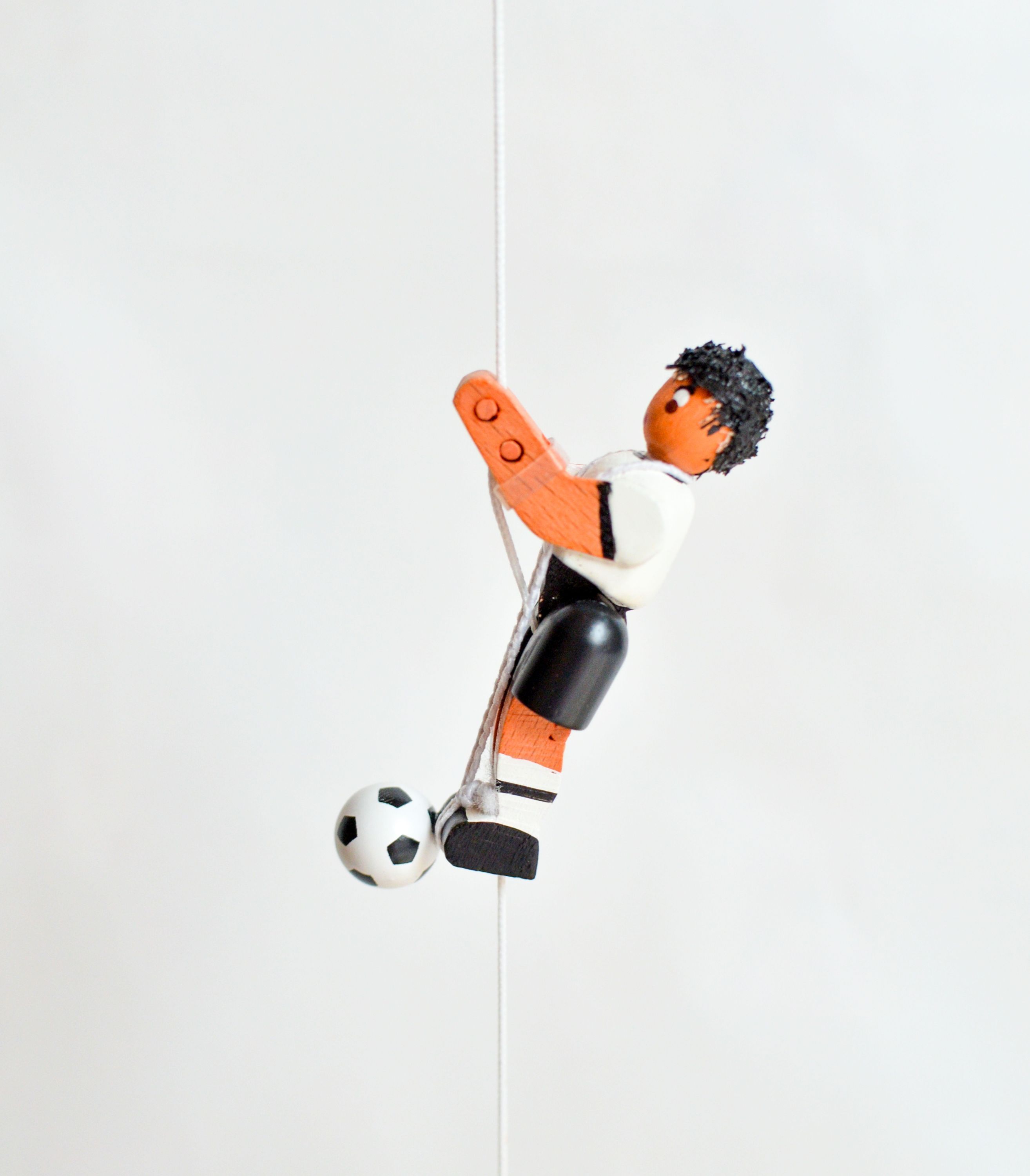 Holzspielzeug Kletterfigur Fußballer Höhe=6,5 (Kletterseil ca 45 cm)cm NEU Klett