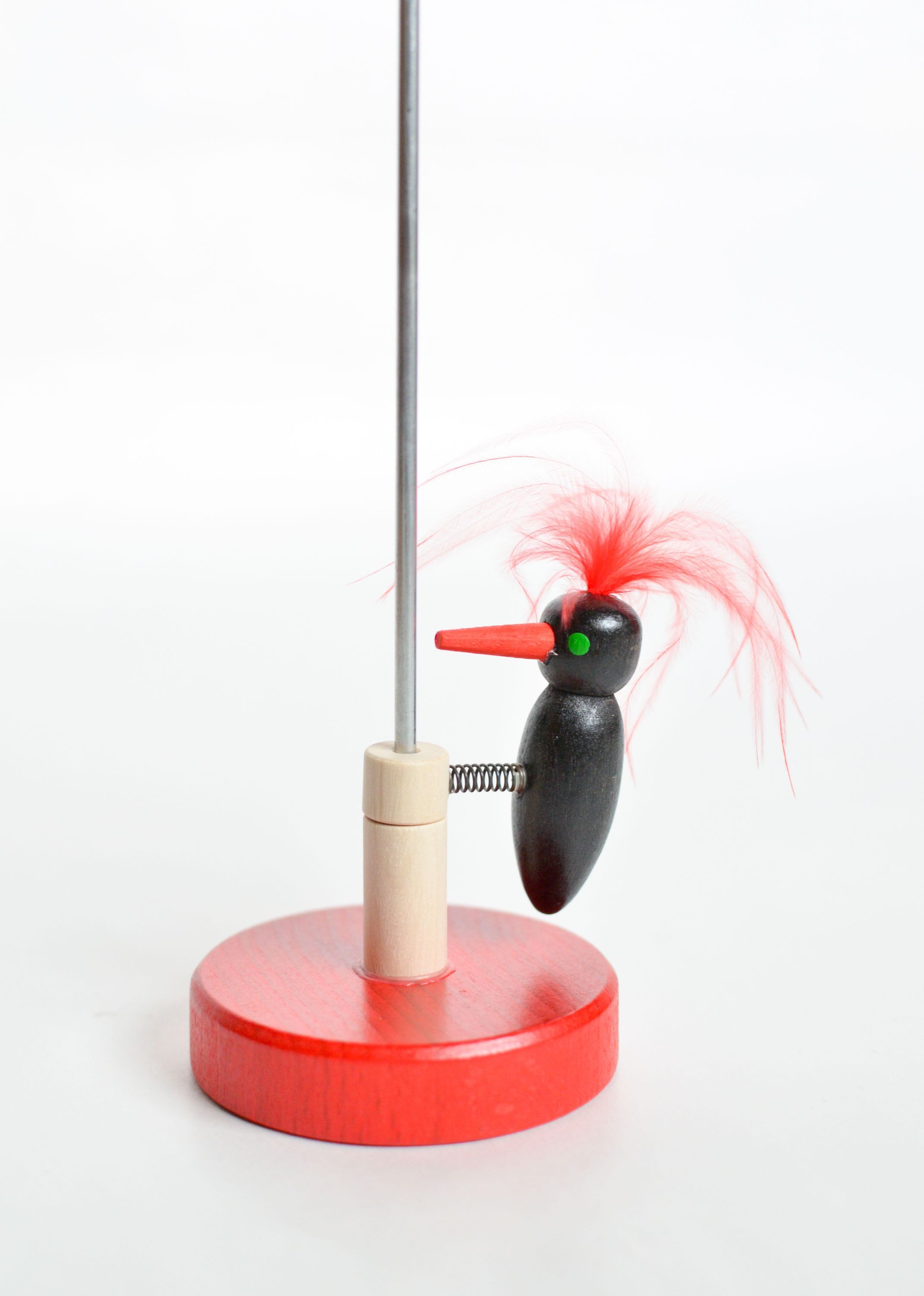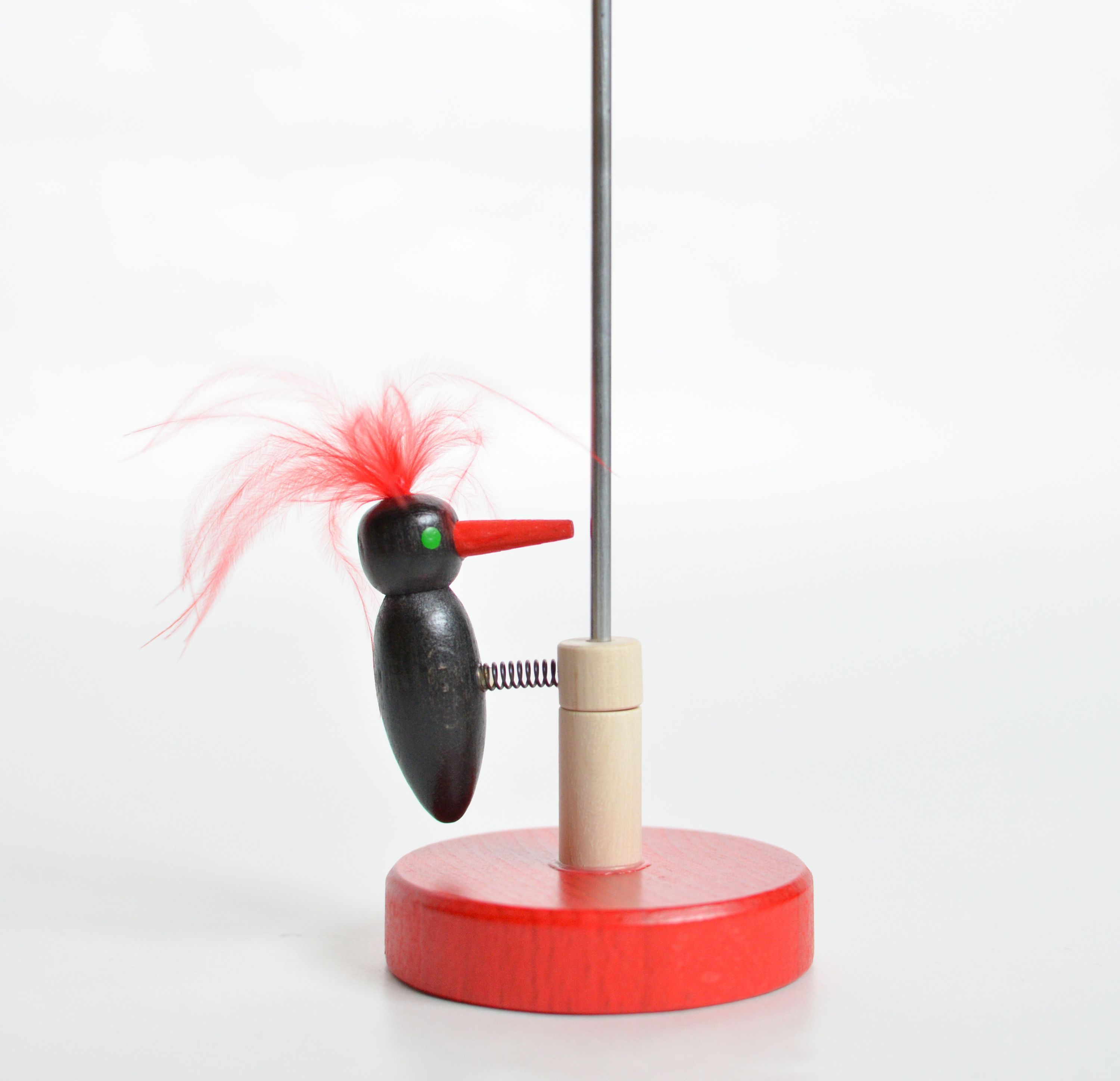 Holzspielzeug Klopfspecht schwarz mit roter Feder Höhe=41cm NEU Klopfvogel