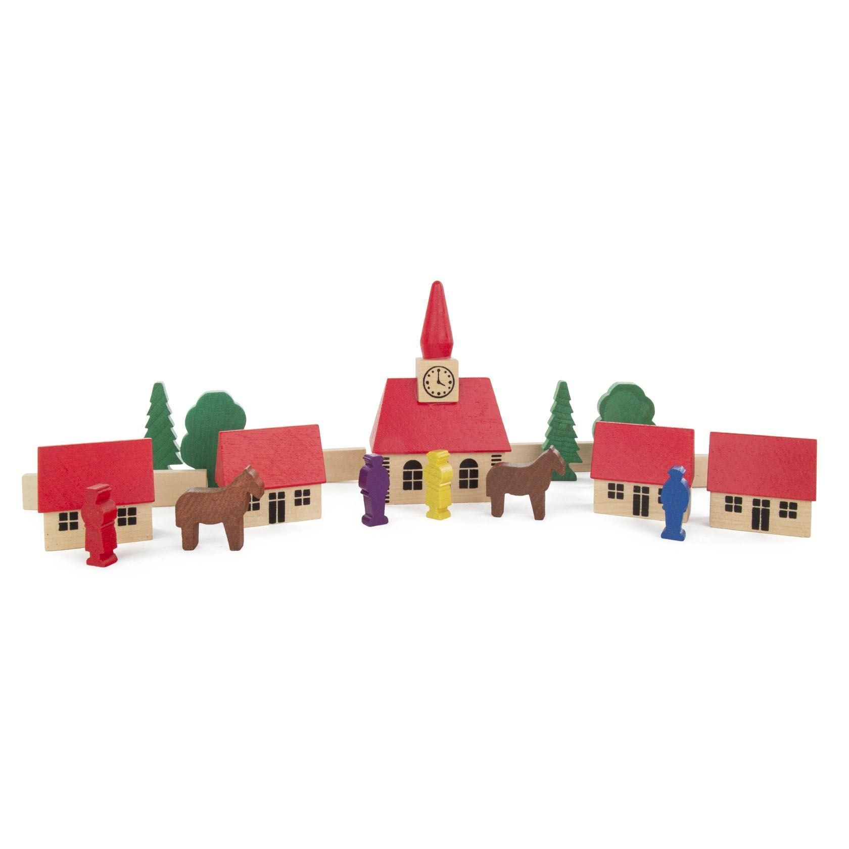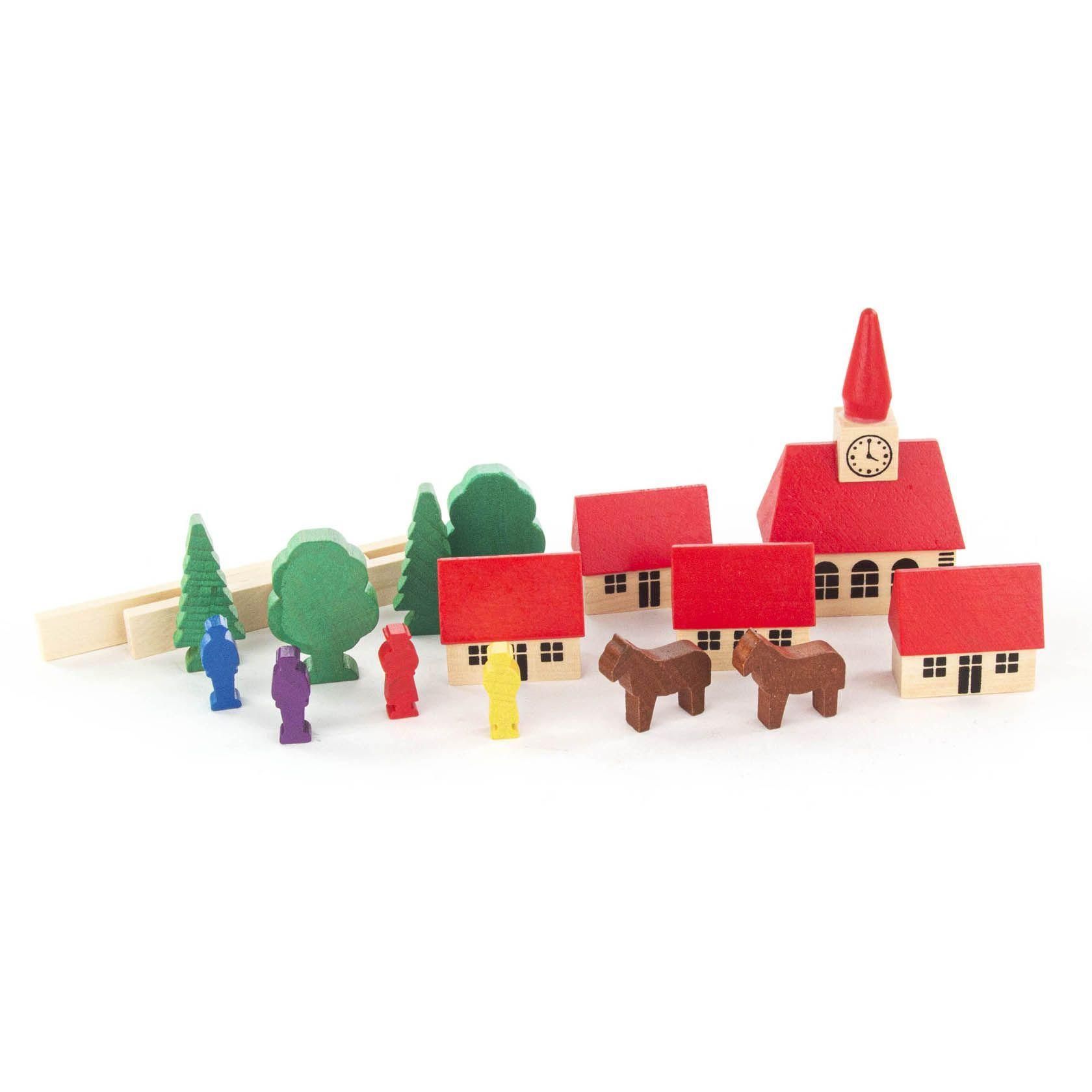 Holzspielzeug Spielzeugdorf mit Kirche bunt Höhe ca. 9cm NEU Bausteine Bauklöt