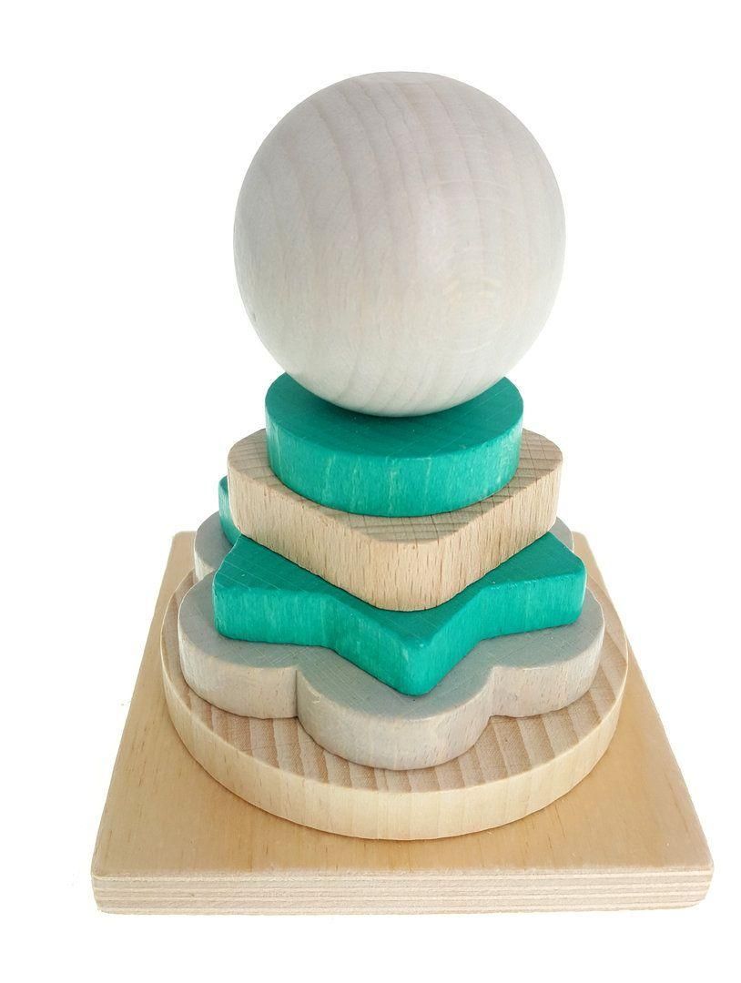 Holzspielzeug Stapelturm türkis BxLxH 90x90x110mm NEU Turm Spielbrett Motorik