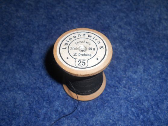 Holzspule / Nähgarn Leinenzwirn -schwarz 3fach 50g
