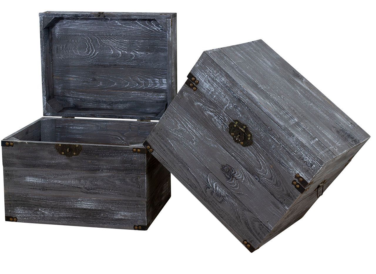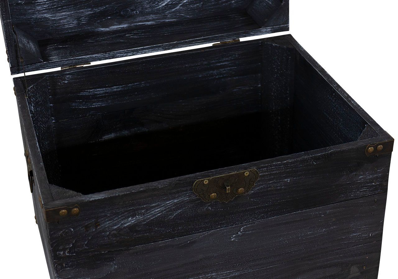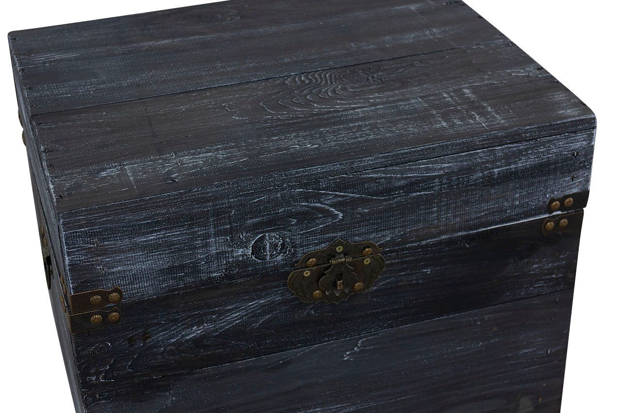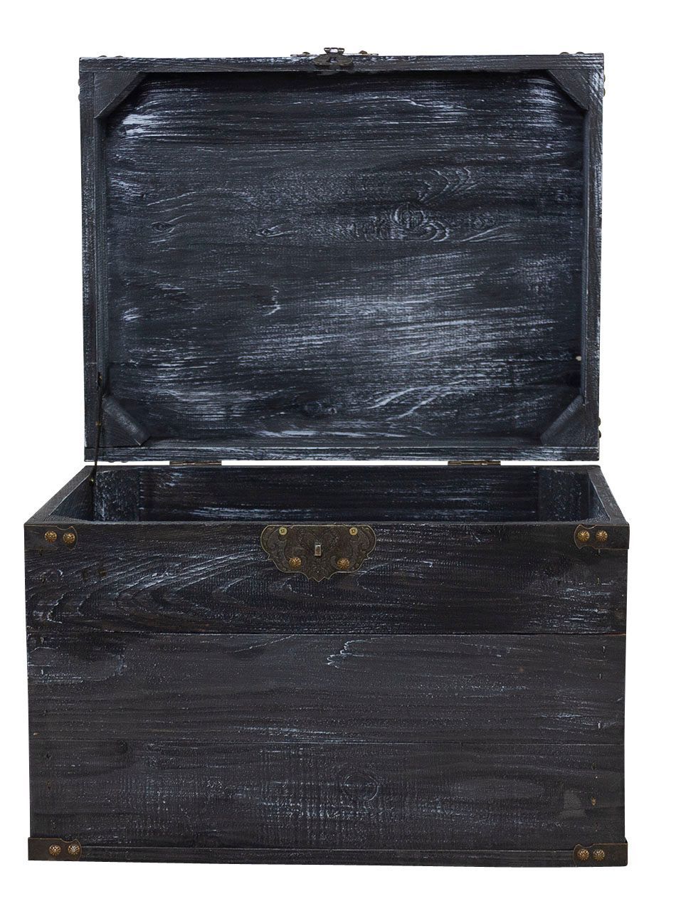 Holztruhe Elsa schwarz shabby Schatztruhe Holzkiste mit Deckel Aufbewahrungskiste